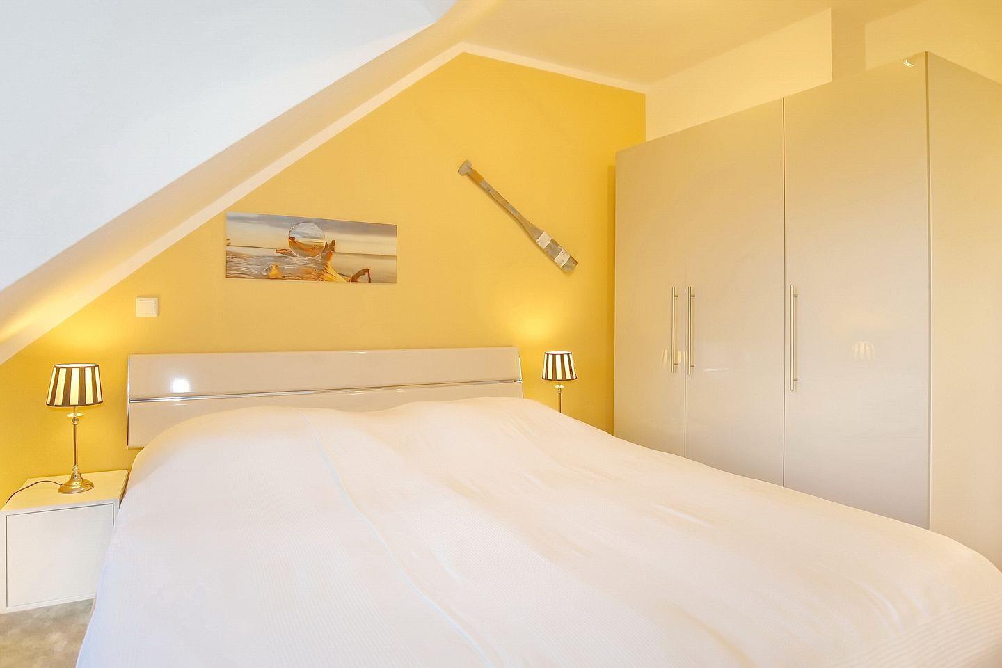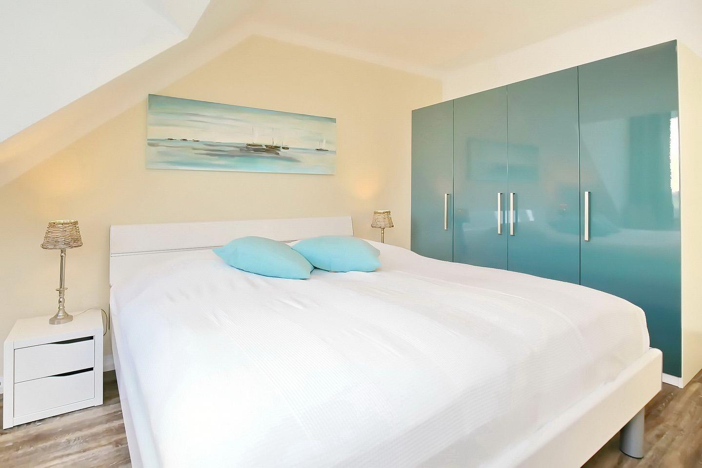 Im ersten Schlafzimmer befindet sich ein großer Kleiderschrank für deine Urlaubsgarderobe, ein zweiter Flachbild-TV sowie ein gemütliches Doppelbett (2 x 90 x 200 cm). Im zweiten Schlafzimmer befinden sich ebenfalls ein Kleiderschrank sowie 1 Doppelbett (2 x 90 x 200 cm).