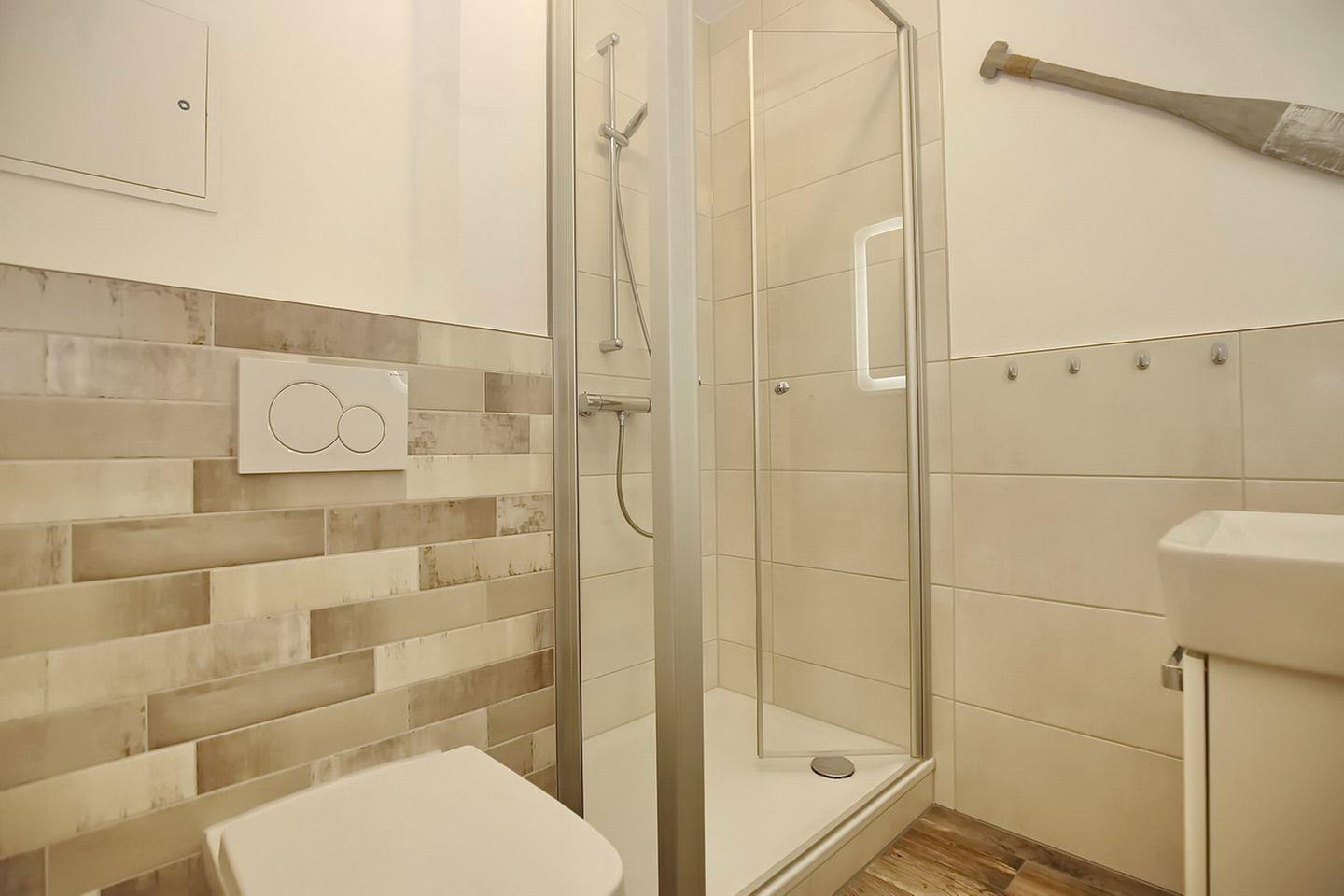 Ein modernes gefliestes Duschbad steht selbstverständlich auch zur Verfügung. Haustiere sind in dieser Nichtraucherwohnung nicht erwünscht.
