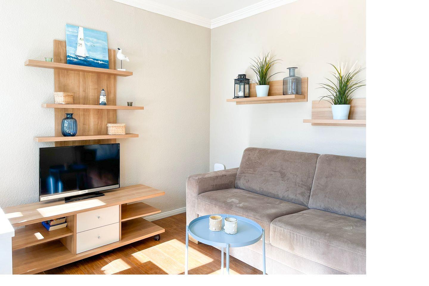 Dein Apartment liegt im Erdgeschoss des Hauses und verfügt über eine Süd-West Terrasse. Zur Wohnung mit einer Fläche von 45 m² gehören ein Wohn- und Essbereich mit offener Küche, ein Schlafzimmer und ein Duschbad. Zum Strand sind es nur ca. 100 m.