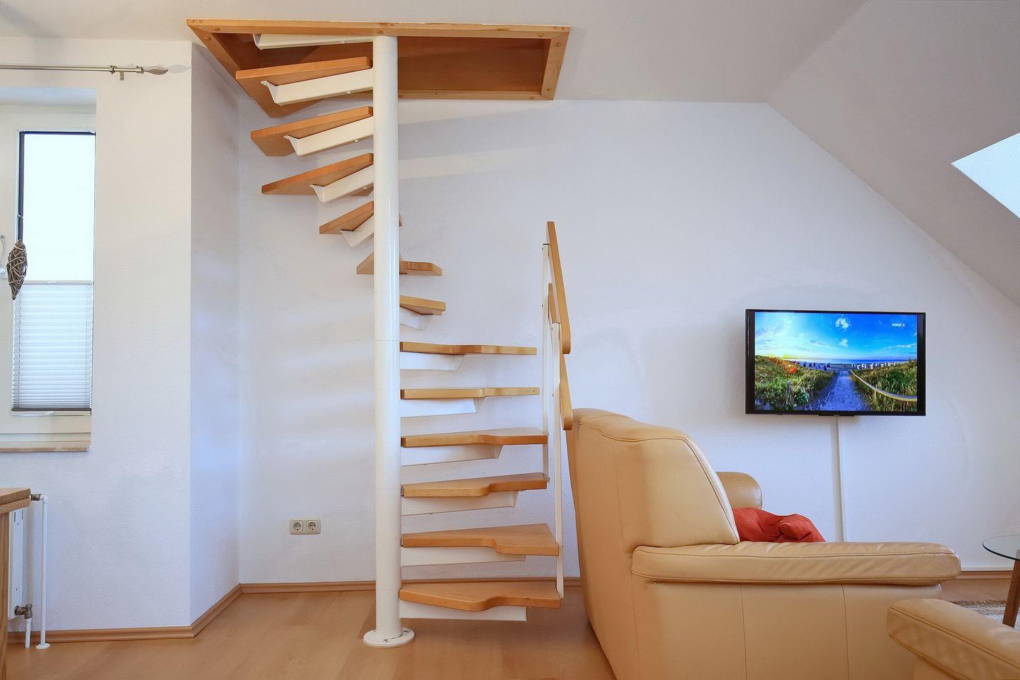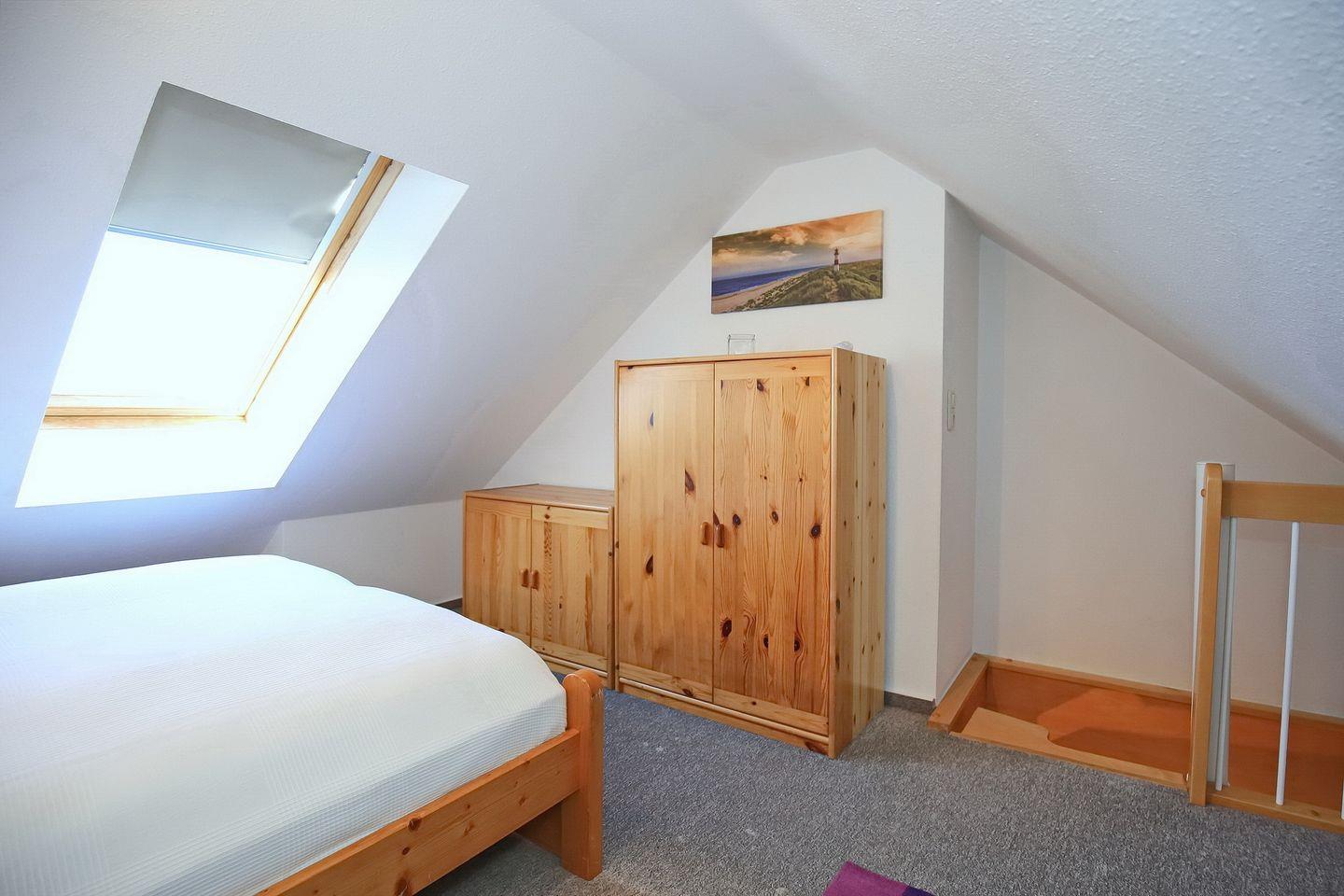 Die 4-Zimmerferienwohnung Sünnslag 67 mit 75 qm verläuft über zwei Etagen (2. OG + DG). Der Balkon ist vom Wohnzimmer aus zu betreten. Dieses Appartement ist für bis zu 6 Personen zugelassen. WLAN (ohne Gewähr) inklusive.