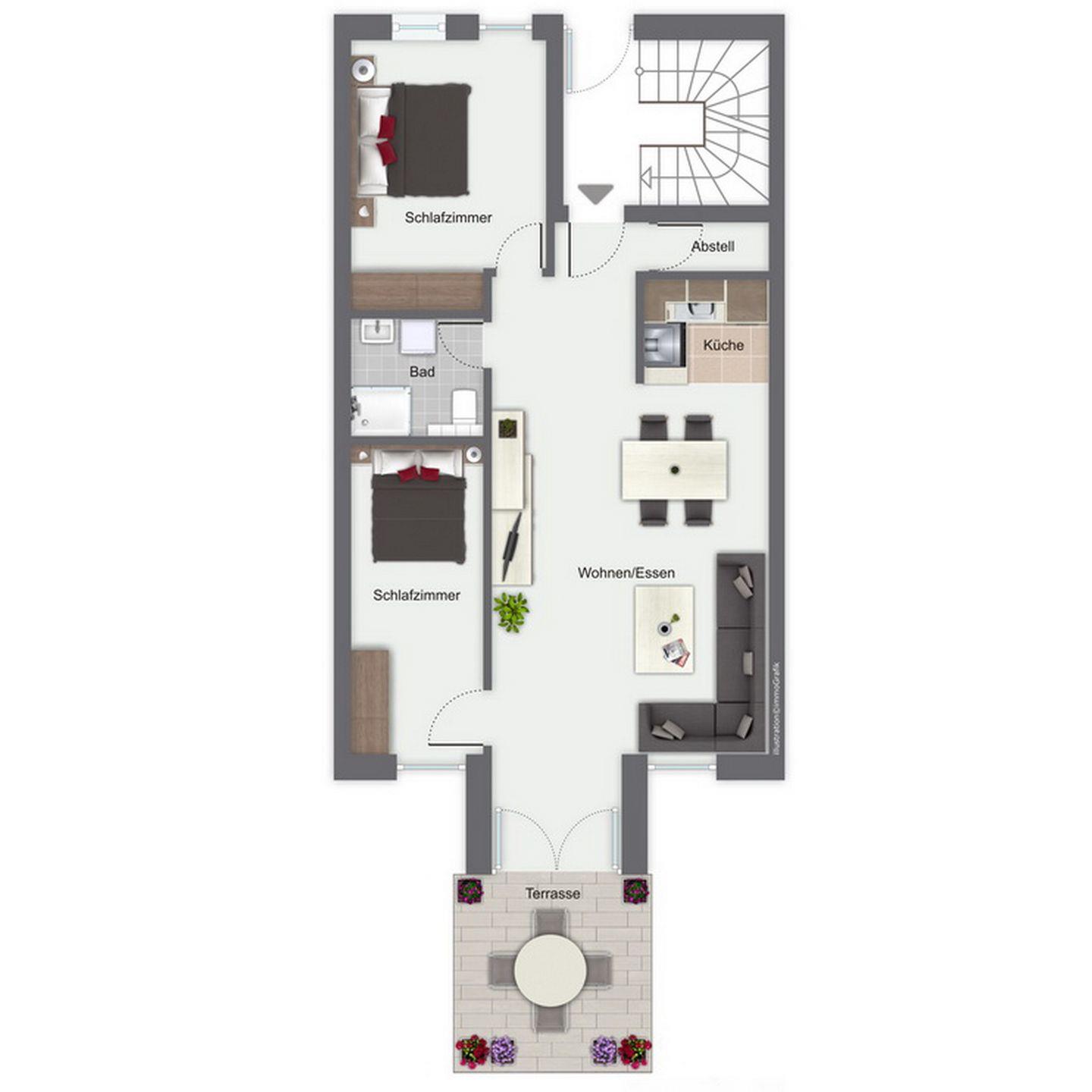 Die sonnige 3-Zi.-Wohnung mit Terrasse in Süd-Ost-Lage liegt im Erdgeschoss. Auf ca. 67 m² bewohnst du einen Wohn-/ Essbereich mit einer Küchenzeile, zwei Schlafzimmer und ein Duschbad. Zum Strand sind es von der Ferienanlage Sünnslag nur etwa 400 m.