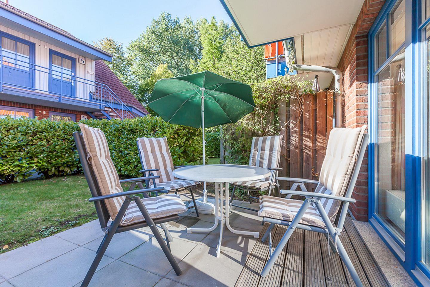 Moderne 2-Zimmer-Ferienwohnung mit überdachter Terrasse und Strandnähe im Ostseebad Boltenhagen.