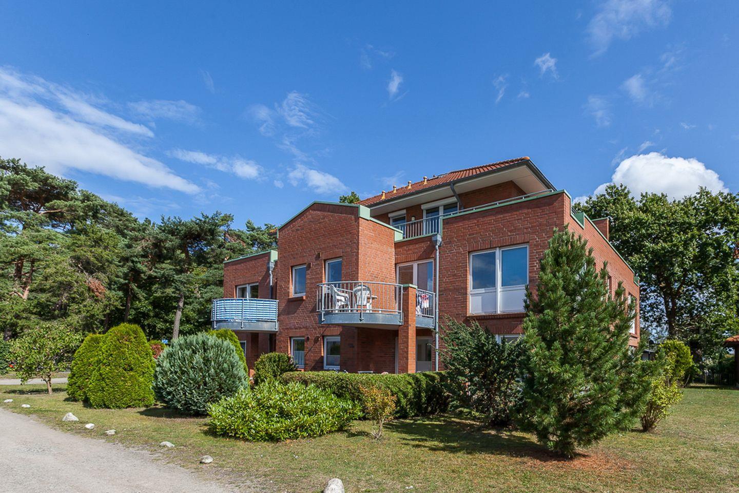 Die Wohnung 14 befindet sich im Erdgeschoss und verfügt auf ca. 53 m² über ein Wohnzimmer, ein Schlafzimmer, eine separate Küche, ein Duschbad sowie eine Süd-West-Terrasse, die mit einer Hecke einen diskreten Abstand zu den Nachbarn bietet. Die Strandentfernung beträgt nur ca. 100 Meter.