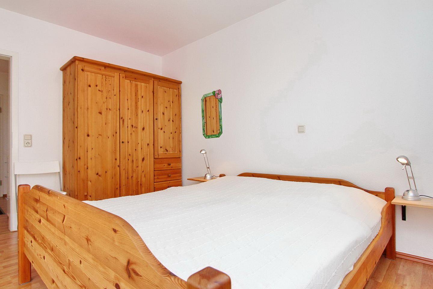Ein großes Doppelbett (2 x 90 x 200 cm) befindet sich im Schlafzimmer. Der 3-türige Kleiderschrank bietet viel Platz für deine Urlaubsgarderobe.