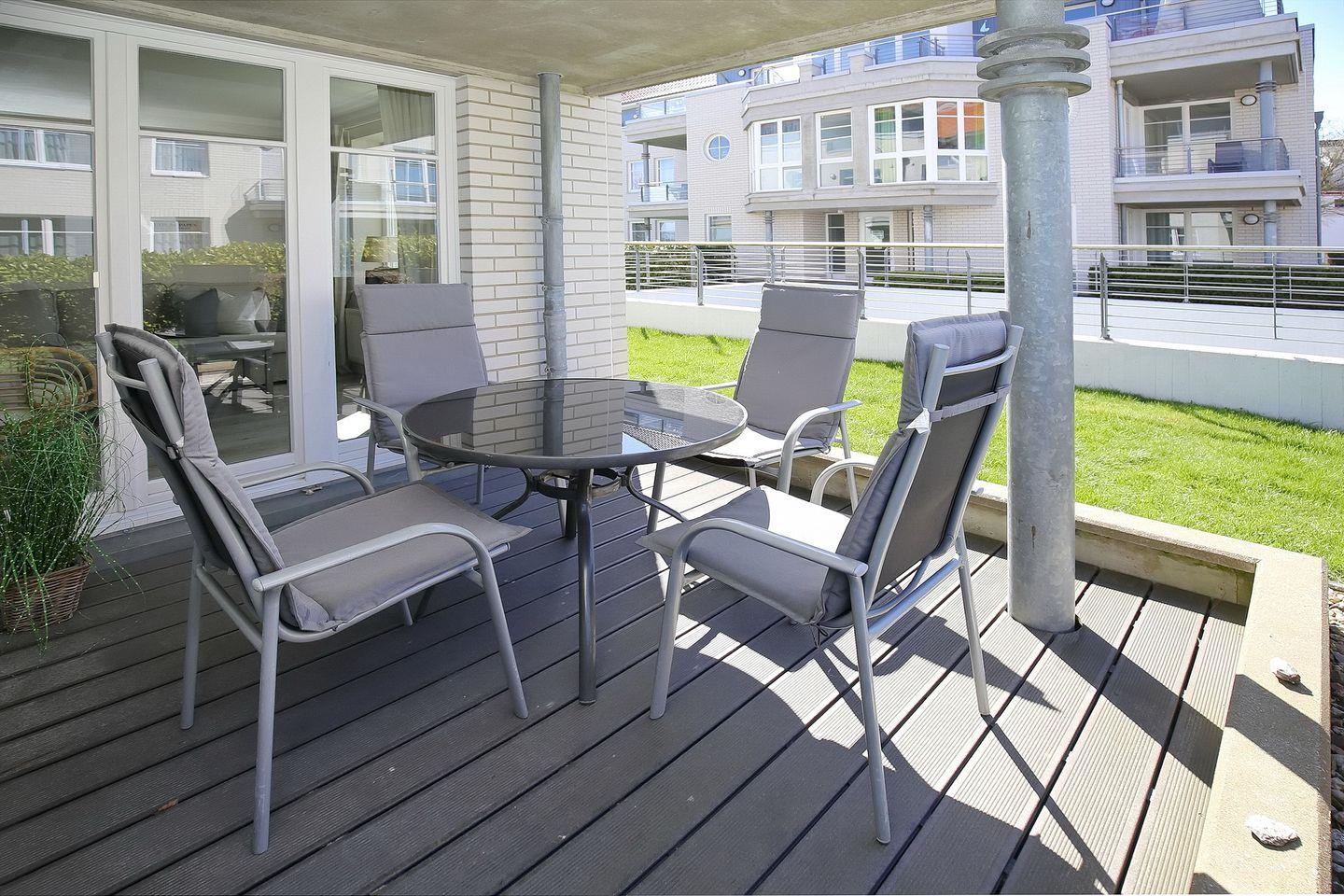 Die möblierte Terrasse kannst du vom hellen Wohnbereich und einem der Schlafzimmer aus erreichen.