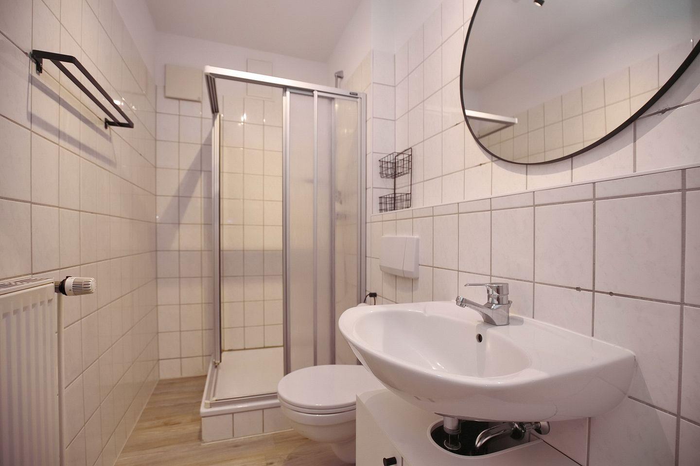 Das Gesamtbild der Wohnung wird mit dem gefliesten Duschbad abgerundet. In dieser Nichtraucherwohnung sind Haustiere nicht erwünscht. Ein Tiefgaragenstellplatz (Einfahrtshöhe 2,10 m) sorgt für die sichere Unterbringung deines Autos.