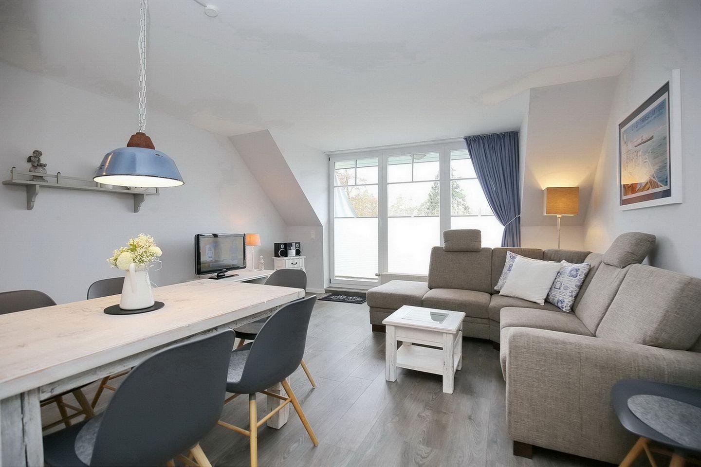 Die Ferienwohnung 01-7 mit dem Namen ‘‘MEER-RAUM‘‘ ist eine hochwertig eingerichtete 4-Zimmer-Wohnung für bis zu 6 Personen.