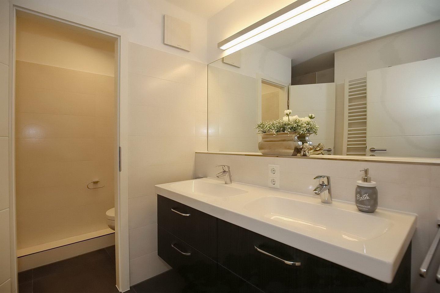 In dem geräumigen Duschbad mit zwei Waschbecken gibt es ein separates WC. Zusätzlich ist das Bad mit einem Föhn ausgestattet. Eine Besonderheit in dieser Ferienwohnung ist das extra Gäste-WC. In dieser Nichtraucherwohnung sind Haustiere nicht erlaubt.