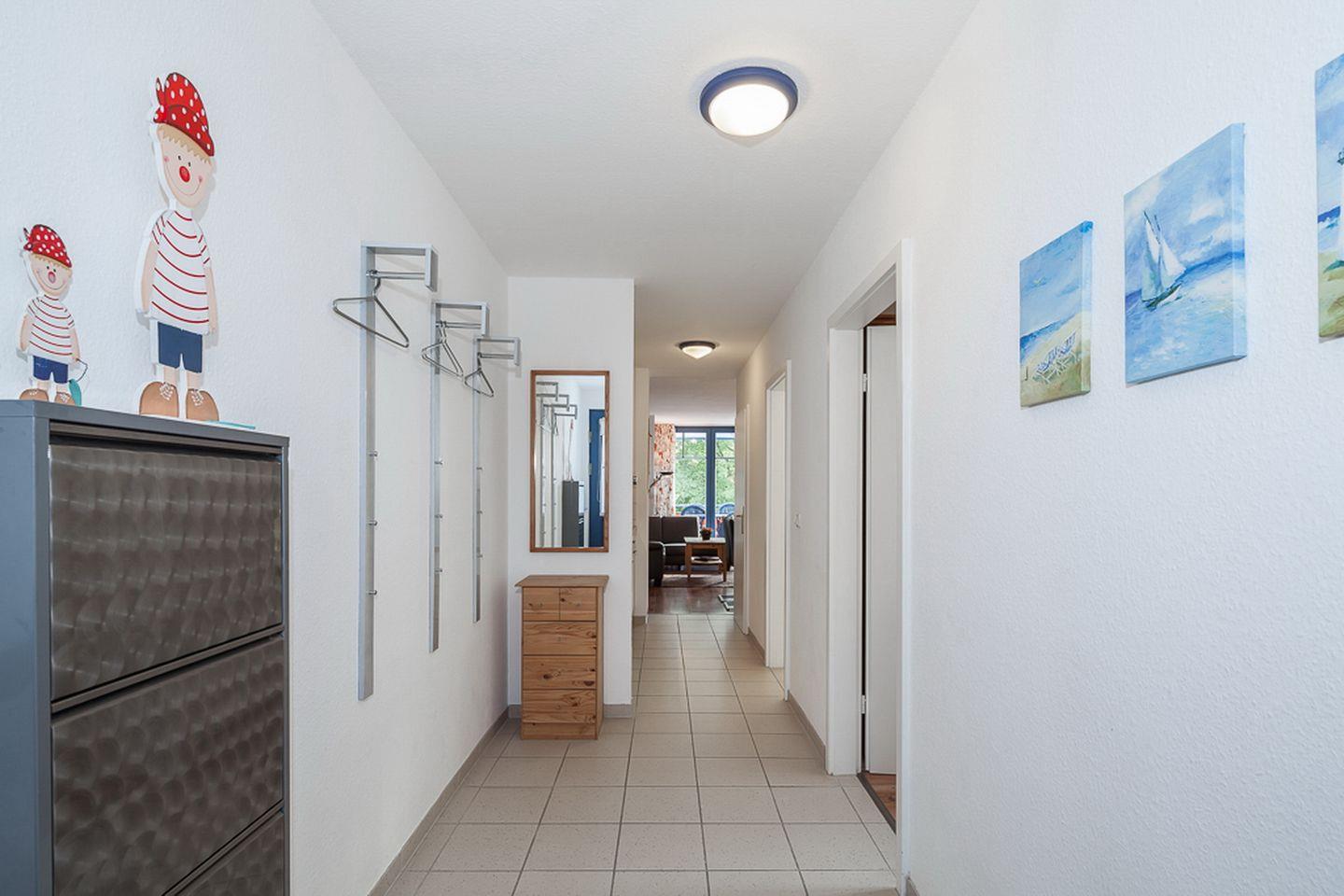 Die liebevoll eingerichtete 4-Zi.-Wohnung mit einem möblierten Balkon in Süd-Lage liegt im 1. OG am Ende des Hauses und ist über eine Außentreppe zu erreichen. Die Wohnung mit ca. 70 m² Wohnfläche verläuft über zwei Etagen und verfügt über einen Wohn- und Essbereich, drei Schlafzimmer, eine integrierte Küchenzeile und ein Duschbad. Die Entfernung zum Strand beträgt von der Ferienanlage Papillon etwa 250 m.