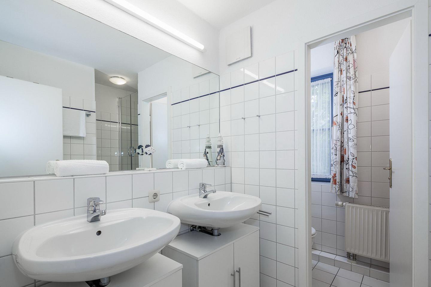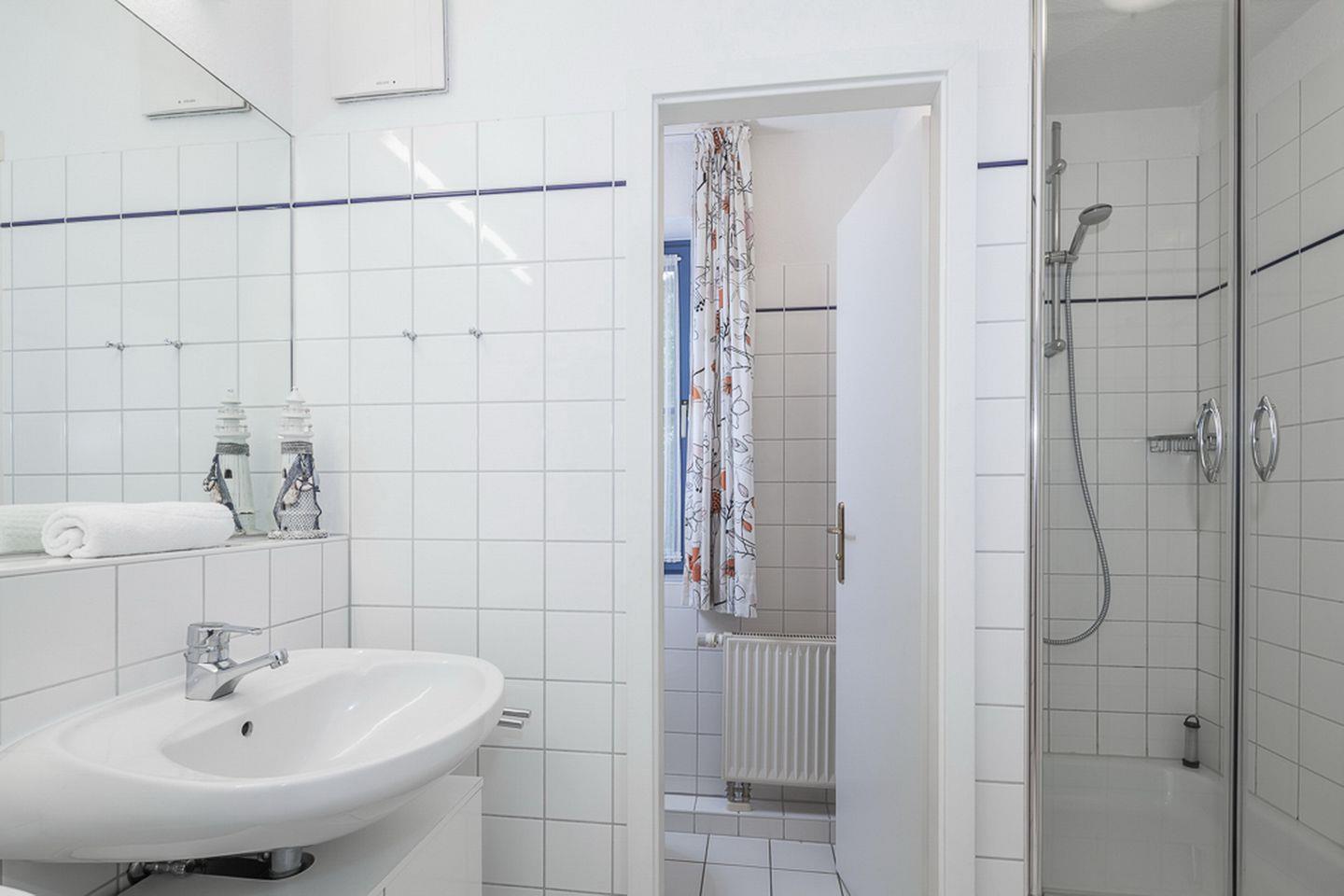 Im geräumigen Duschbad mit zwei Waschbecken gibt es ein separates WC mit einem Fenster. Fahrräder können im Fahrradkeller sicher abgestellt werden. In dieser Nichtraucherwohnung sind Haustiere nicht erwünscht.