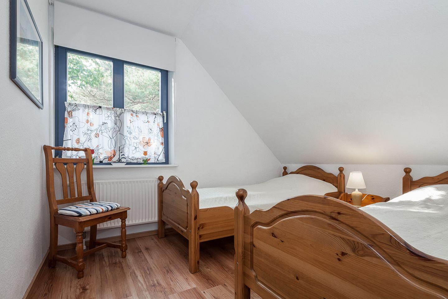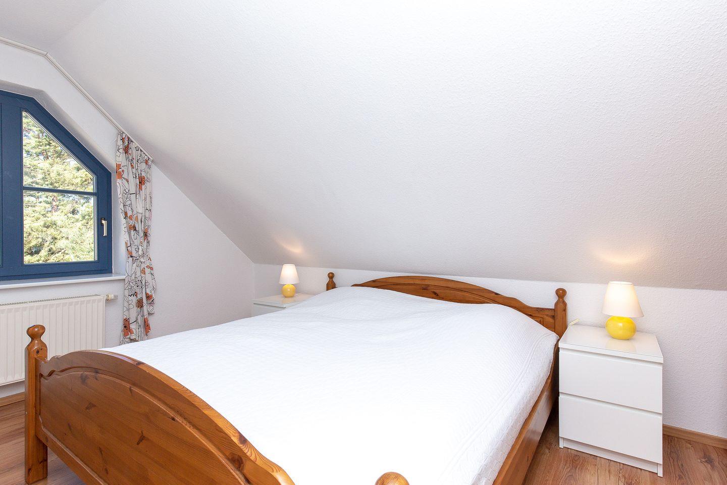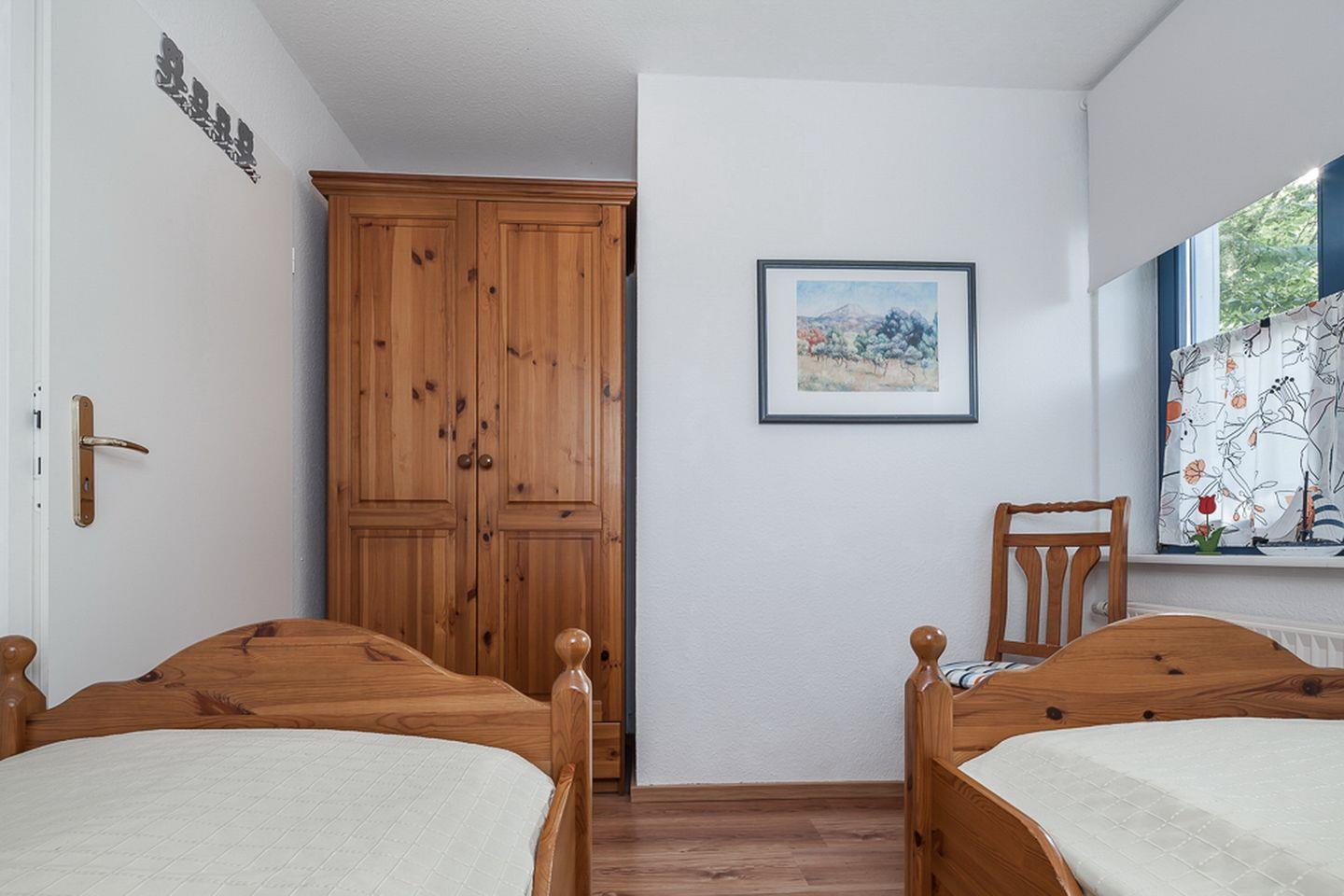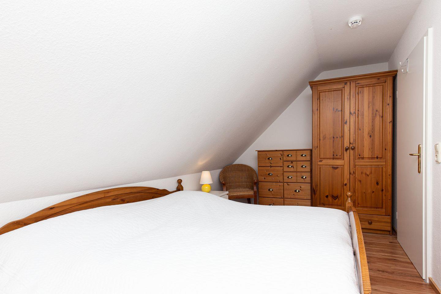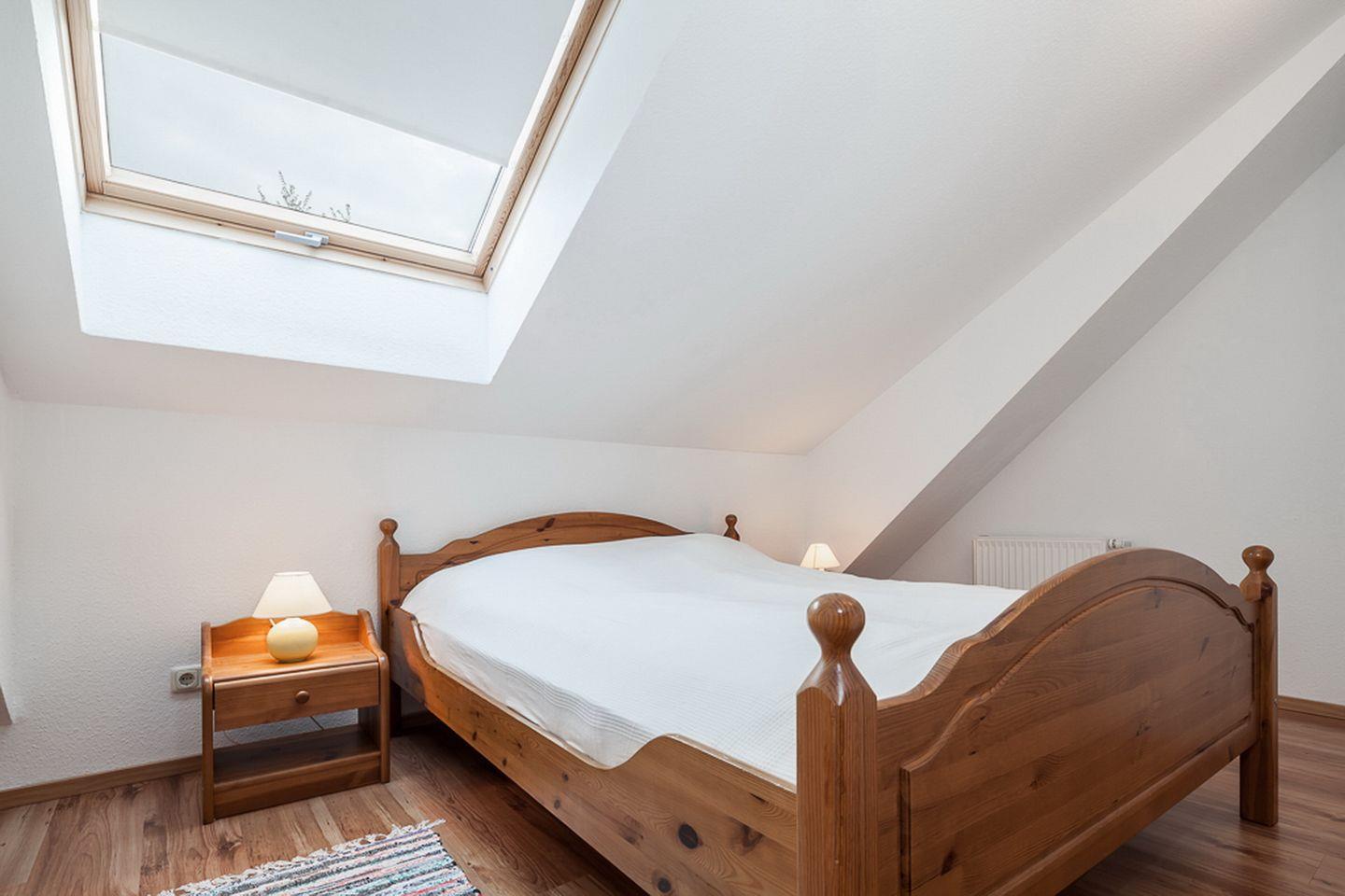 Dein Schlafzimmer im 1. OG ist mit zwei Einzelbetten (90 x 200 cm) und einem Kleiderschrank eingerichtet. Beide Schlafzimmer im Dachgeschoss sind mit jeweils einem Doppelbett (2 x 90 x 200 cm und 2 x 80 x 200 cm) und einem Kleiderschrank ausgestattet. Zur Verdunkelung an den Fenstern gibt es Vorhänge bzw. ein Rollo.