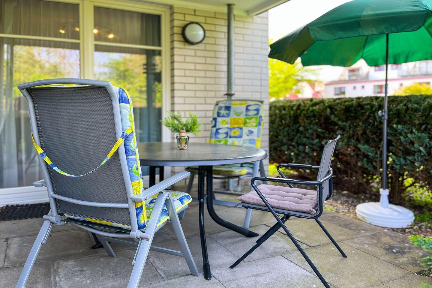 Gemütliche 3-Zimmer-Ferienwohnung Dünenblick mit Terrasse, nur 50 m vom Strand in Boltenhagen entfernt.