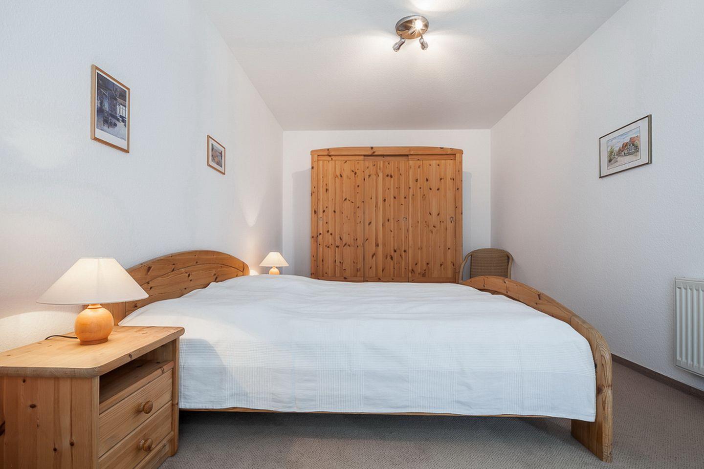 Im separaten Schlafraum steht ein Doppelbett (2 x 90 x 200 cm) bereit. Ein Kleiderschrank bietet ausreichend Stauraum für dein Urlaubsgepäck. Die Fenster werden mit Vorhängen abgedunkelt.