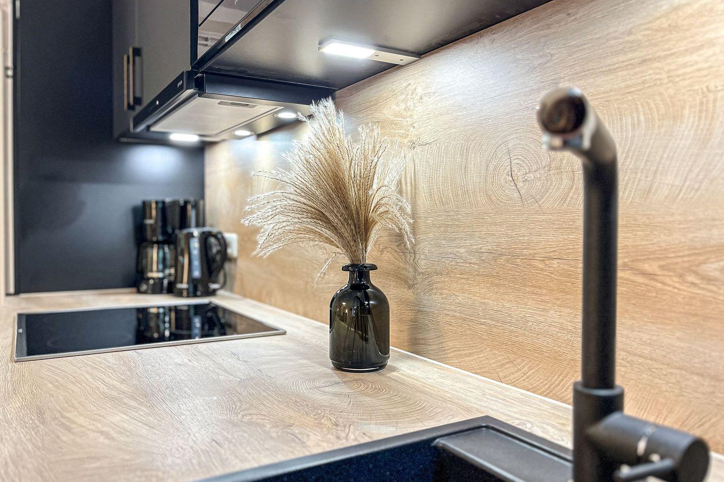 Als Schlafmöglichkeit erwartet dich eine bequeme Schlafcouch (180 x 200 cm). Die im Wohnzimmer integrierte Küchenzeile bietet dir eine Mikrowelle und einen 4-Platten-Herd mit Backofen. Selbstverständlich kannst du hier auch einen Flachbildfernseher und eine Stereoanlage mit CD-Player nutzen.