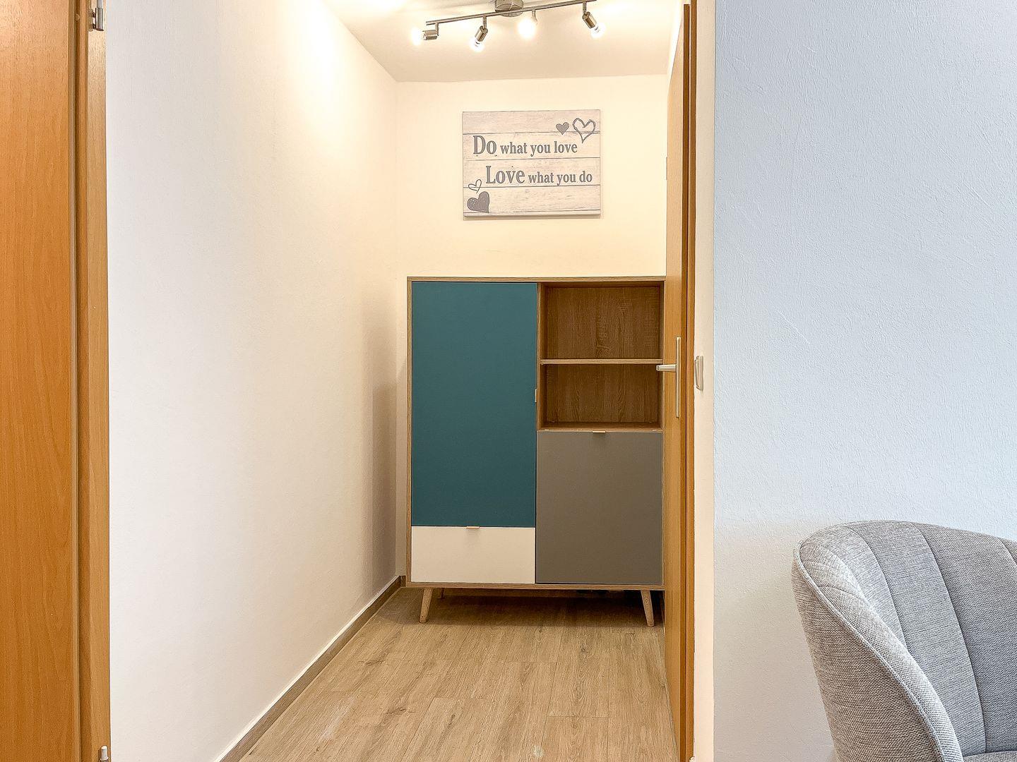 Die Wohnung liegt im Souterrain des Hauses und hat einen kombinierten Wohn- und Schlafbereich, eine Küchenzeile und ein Duschbad. Als Schlafmöglichkeit erwartet dich im Wohn-/Schlafraum eine Doppelschlafcouch (140 cm x 200 cm).