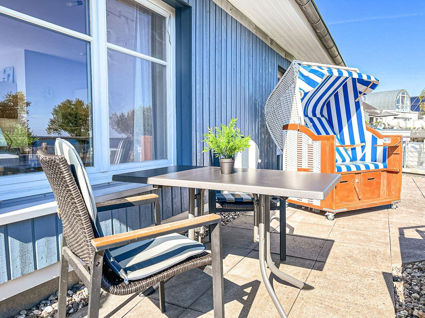 Komfortable 2-Zimmer-Ferienwohnung mit großer Dachterrasse und Meerblick, nur 50 m vom Strand in Boltenhagen entfernt.