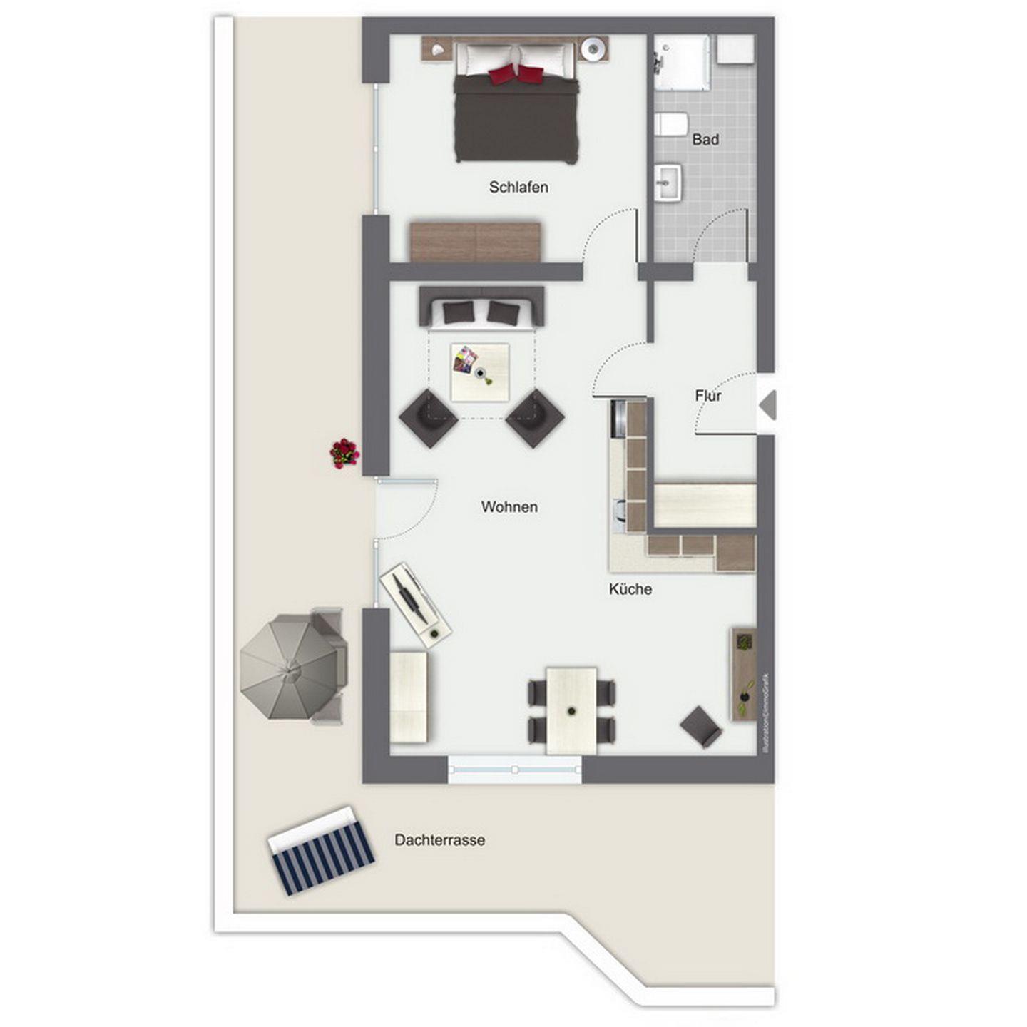 Die Ferienwohnung Nr. 47 in der Ferienanlage Dünenblick ist eine 2-Zimmer-Penthouse-Wohnung für bis zu 3 Personen.
