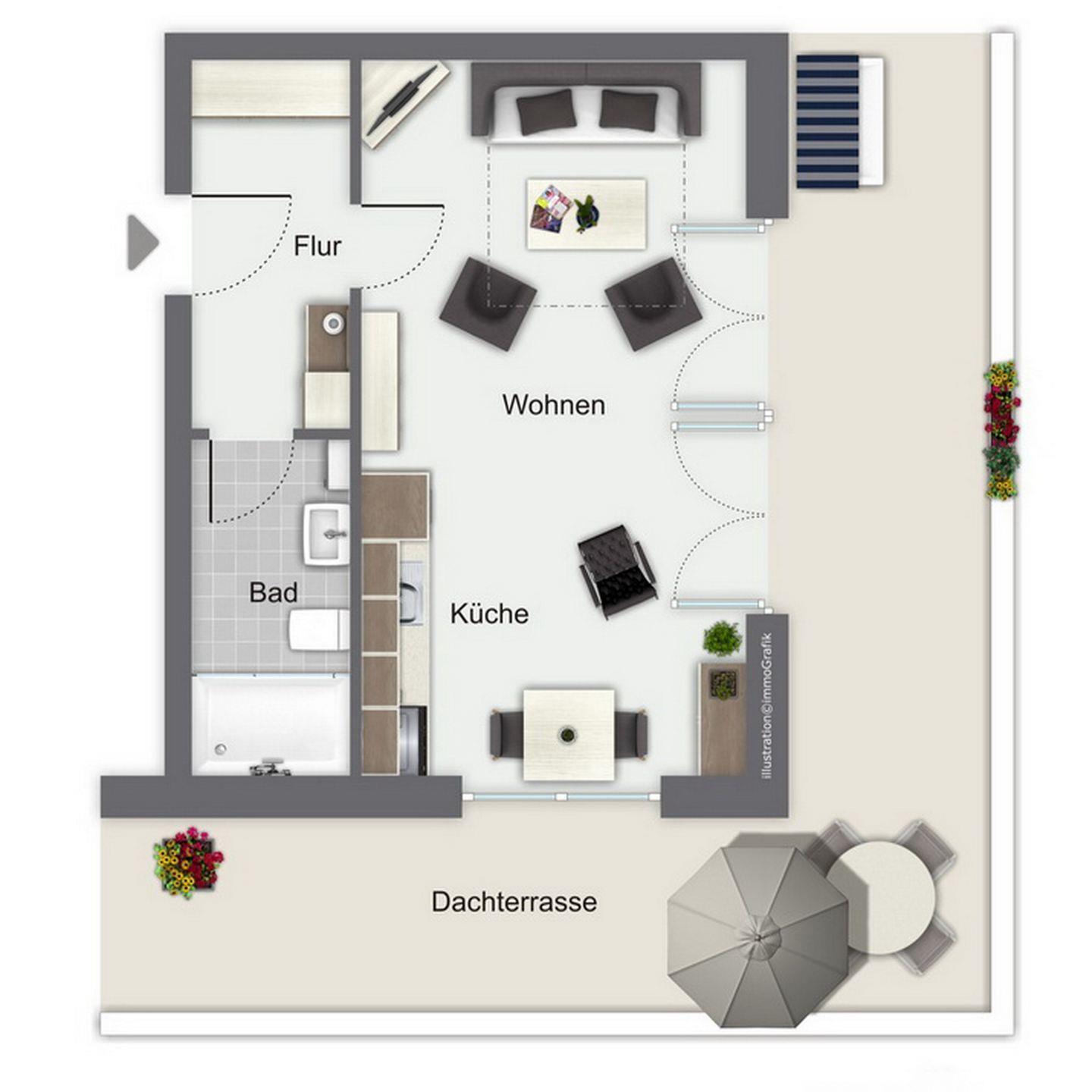 Der Bodenbelag wurde im Wohnzimmer mit Holzlaminat ausgelegt und im Duschbad mit Fliesen. In dieser Nichtraucherwohnung sind Haustiere nicht erlaubt. Ein PKW-Stellplatz steht dir im Außenbereich zur Verfügung.