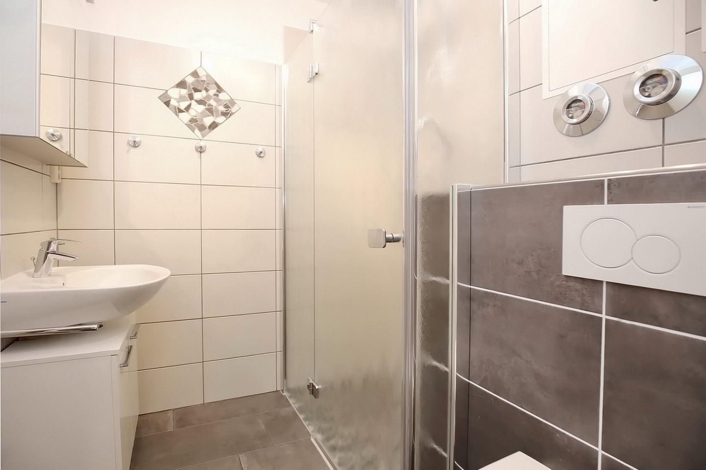 Das geflieste Duschbad ist mit Dusche und einem WC ausgestattet. Haustiere sind in dieser Nichtraucherwohnung nicht erwünscht. Drei Damenfahrräder und ein Herrenfahrrad können genutzt werden. (Bitte beachte: kein rechtlicher Anspruch auf diese Mietsache).