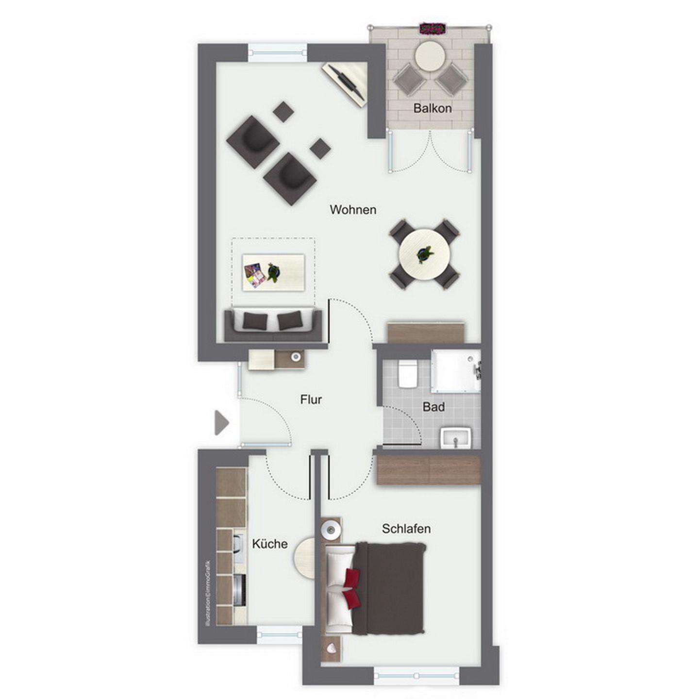 Auf ca. 49 m² erwartet dich die im 1. OG gelegene helle 2-Zi.-Wohnung mit eigenem Zugang über eine Außentreppe (Metallgitter). Du bewohnst ein Wohnzimmer mit Essbereich, eine separate Küche, ein Schlafzimmer, ein gefliestes Duschbad und einen Balkon. Die Entfernung zum Strand beträgt von der Ferienanlage Sünnslag ca. 400 m.