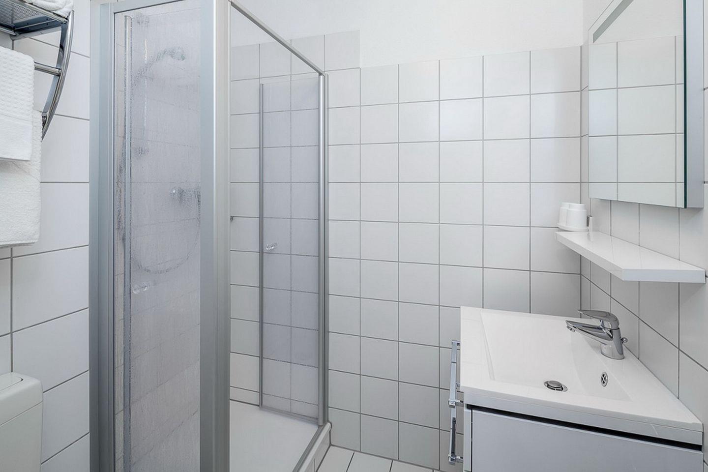 Das Duschbad ist gefliest. In dieser Nichtraucherwohnung sind maximal zwei Haustiere erlaubt.
