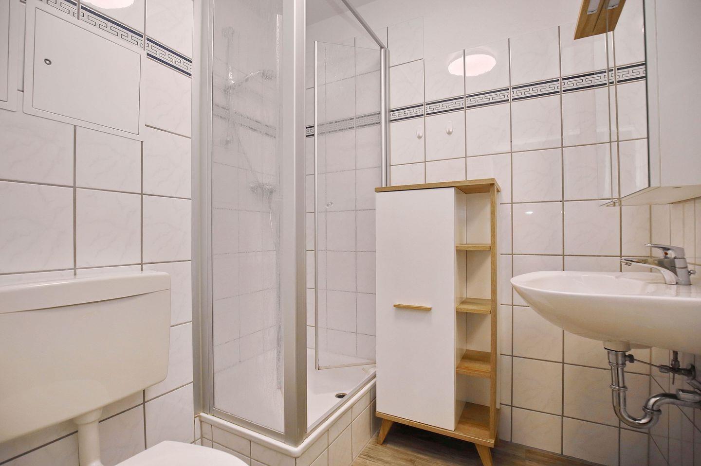 Das Duschbad ist gefliest. In dieser Nichtraucherwohnung sind Haustiere nicht gestattet. In der gesamten Wohnung wurde Design-Belag verlegt.