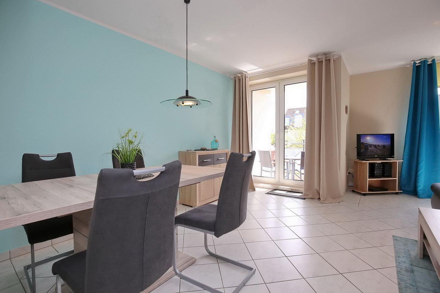 Gemütliche 2-Zimmer-Ferienwohnung mit Balkon in Boltenhagen, nur 400 m vom Strand entfernt.