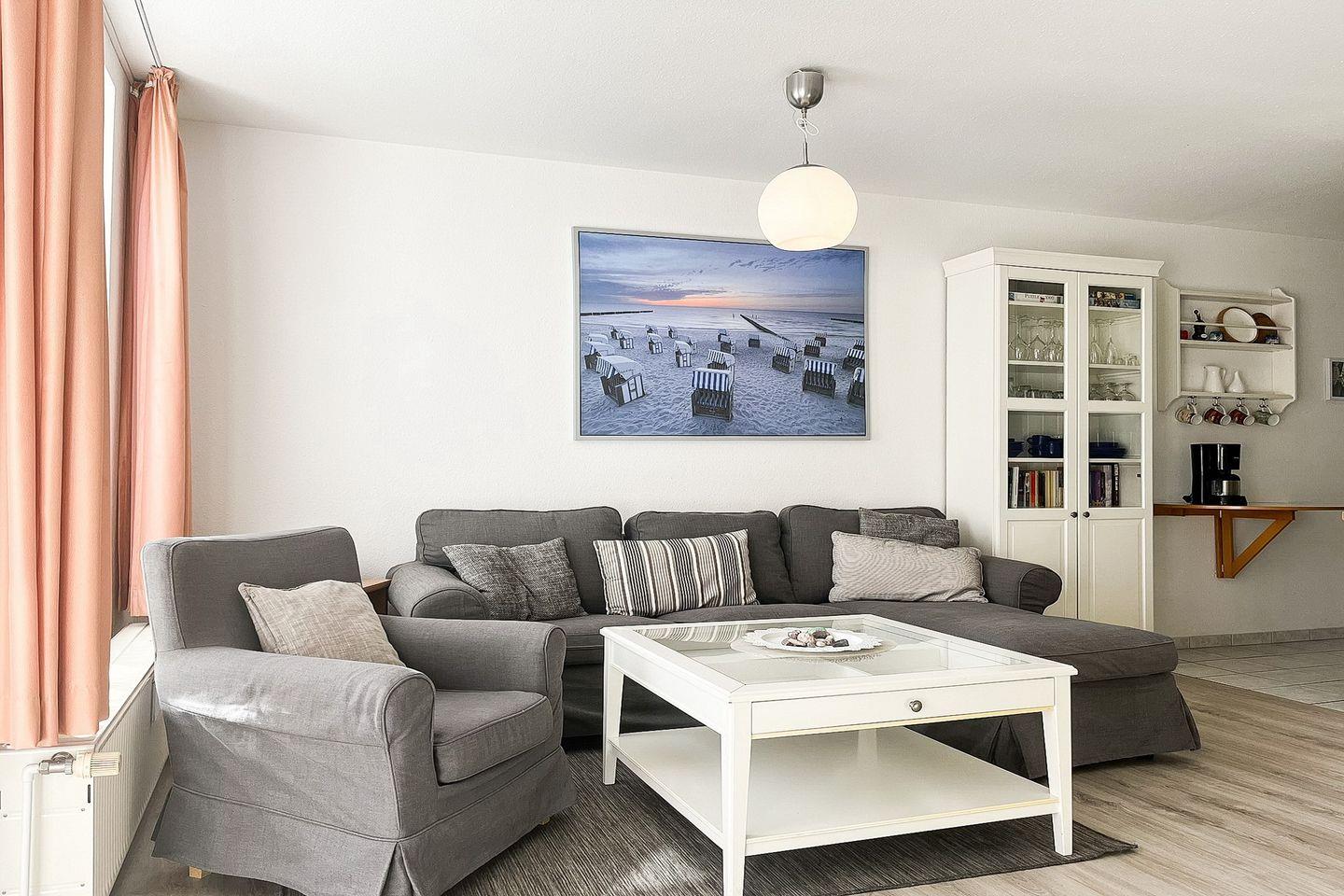 Die 3-Zimmer-EG-Wohnung bietet 63 m² Wohnvergnügen. Die dazugehörige Terrasse lädt zum Sonnenbaden ein. Dazu steht auch ein Strandkorb zur Verfügung. In dem voll ausgestatteten Küchenbereich ist eine Waschmaschine vorhanden. WLAN (ohne Gewähr) inklusive.