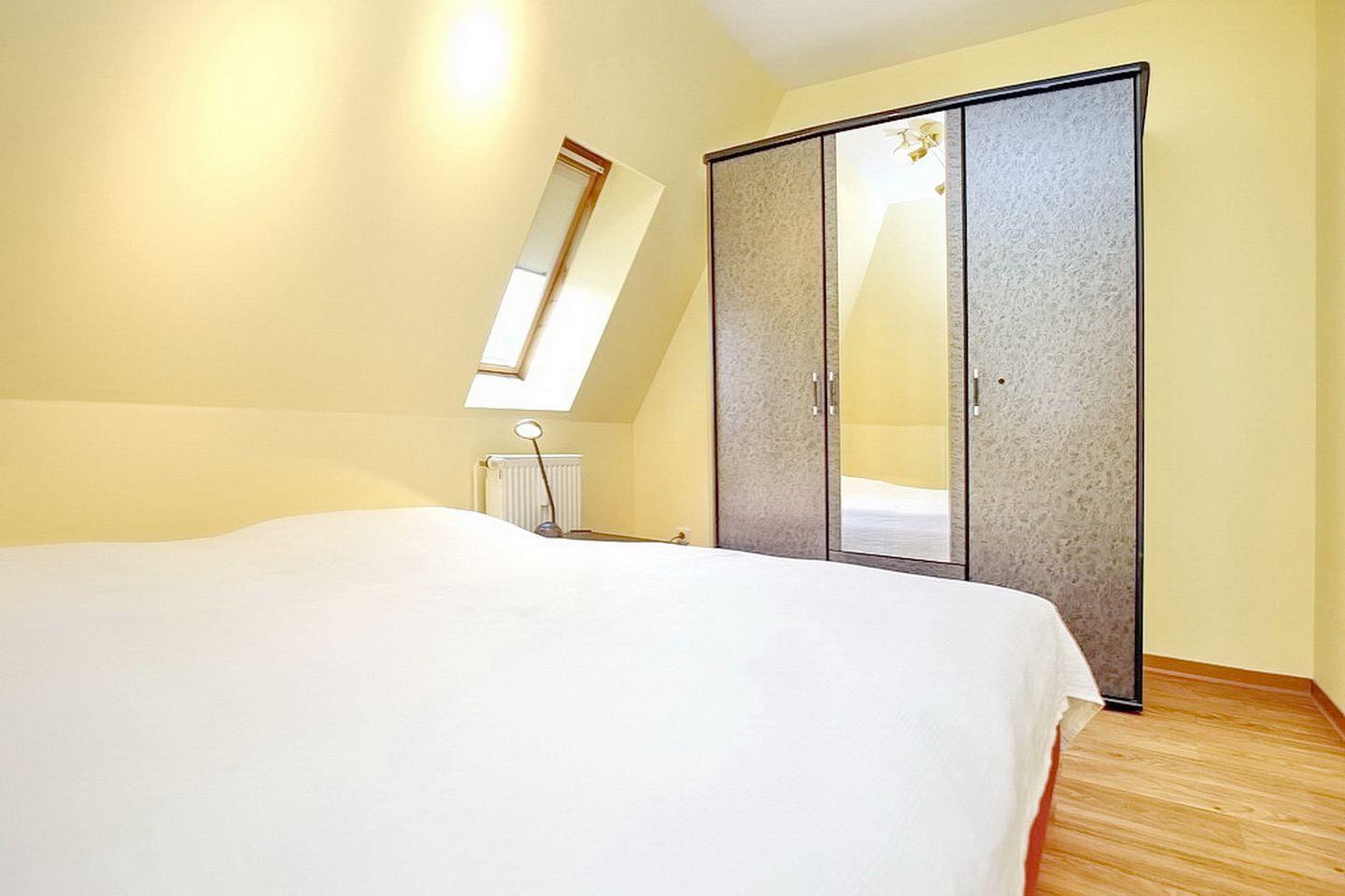 Im Schlafzimmer erwartet dich eine Doppelliege (2 x 90 x 200 cm) und ein 3-türiger Kleiderschrank für deine Urlaubsbekleidung. Plissees befinden sich an den Fenstern. Der Bodenbelag ist Laminat.