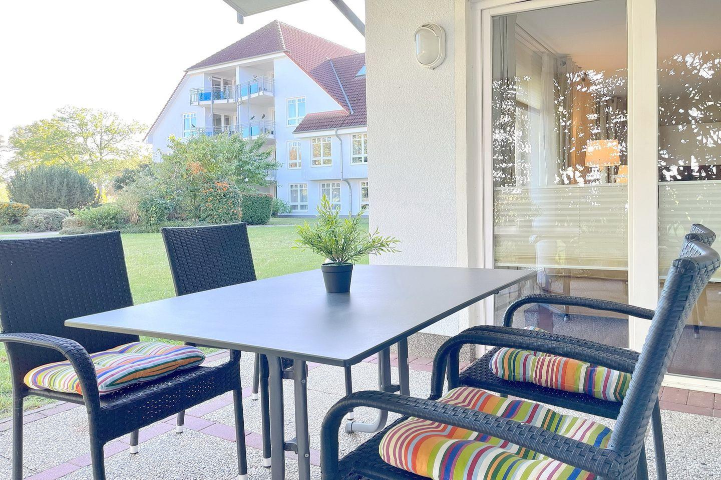Gemütliche 2-Zimmer-Ferienwohnung in Boltenhagen, nur 70 Meter vom Strand entfernt mit Terrasse und moderner Ausstattung.