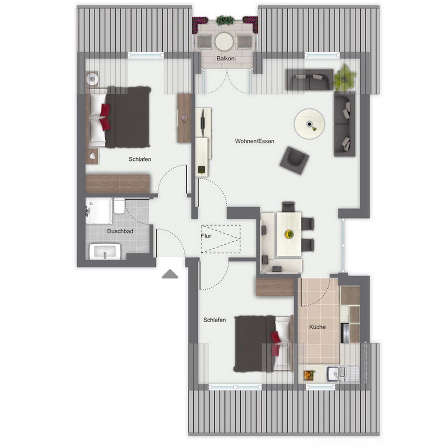 Auf ca. 62 m² bietet dir diese Ferienwohnung im 2. OG ein Wohnzimmer, zwei Schlafzimmer, die Küche, das Duschbad sowie einen Balkon in Süd-West-Lage. Die Entfernung zum Strand beträgt ca. 400 Meter.