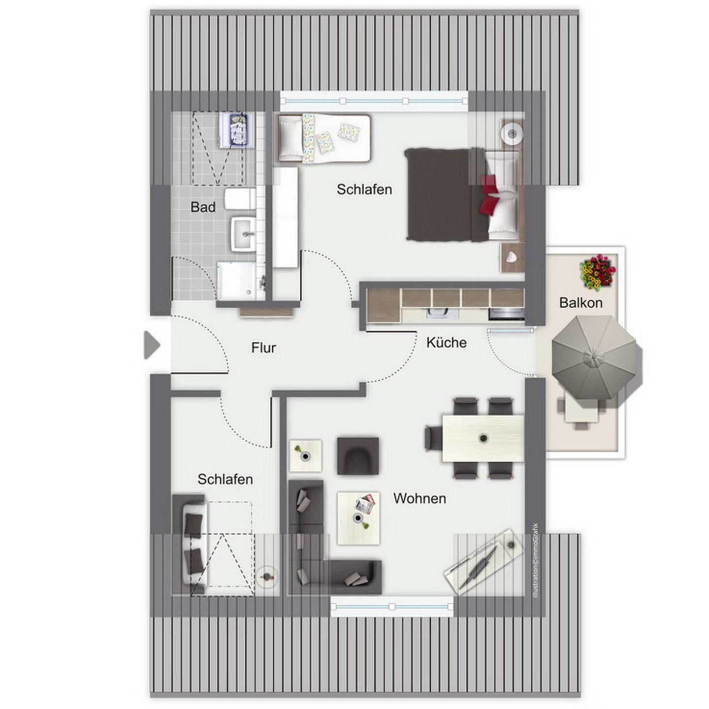 Wohnfläche 55 m²