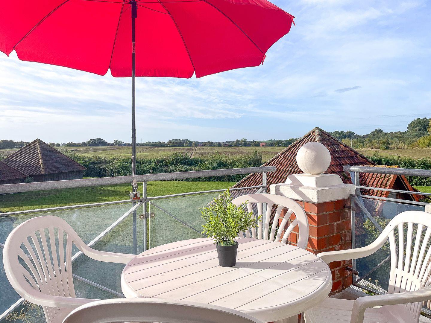 Verbringe deinen Urlaub in dieser 3-Zimmer-Ferienwohnung für 4 Personen. Auf 60 m² erwartet dich im ersten Obergeschoss ein Wohn- und Essbereich, eine Küchenzeile, zwei Schlafzimmer, ein Duschbad und ein Süd-Ost Balkon. Die Strandentfernung beträgt von der Anlage Sünnslag 400 m.