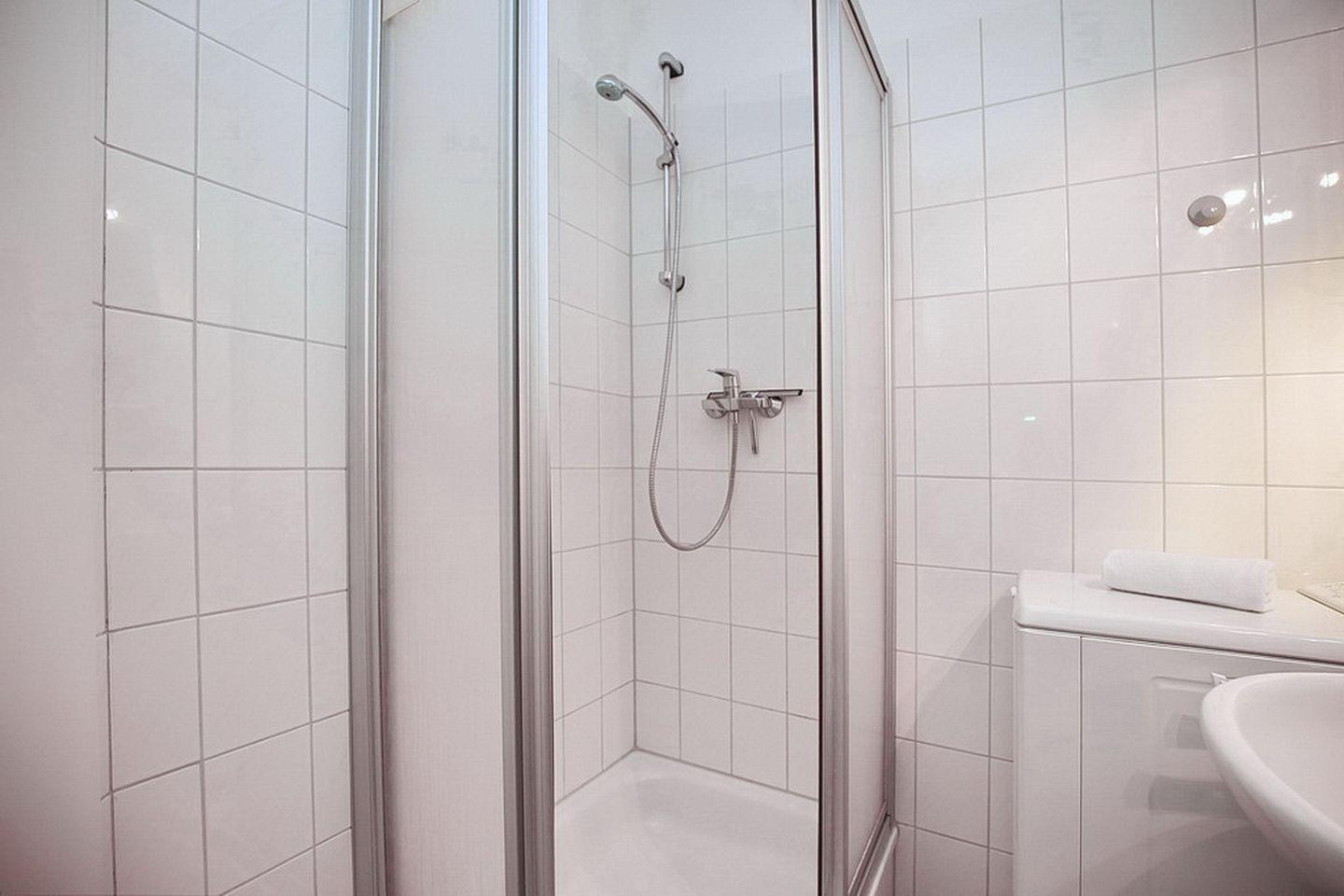 Die separate Küche ist ausgestattet mit einem Herd mit 4-Platten-Cerankochfeld, einem Backofen, Mikrowelle, Geschirrspüler und vielem mehr. Ein Duschbad gehört selbstverständlich zur Wohnung. Eine komfortable Waschmaschine ist bei einem längeren Aufenthalt angenehm. Auch ein Föhn ist vorhanden. Vor den Fenstern befinden sich Jalousien. Flur und Wohnzimmer sind mit Laminat ausgelegt, das Bad und die Küche sind gefliest. Bitte habe Verständnis, dass in dieser Wohnung nicht geraucht werden darf und Haustiere nicht erlaubt sind.