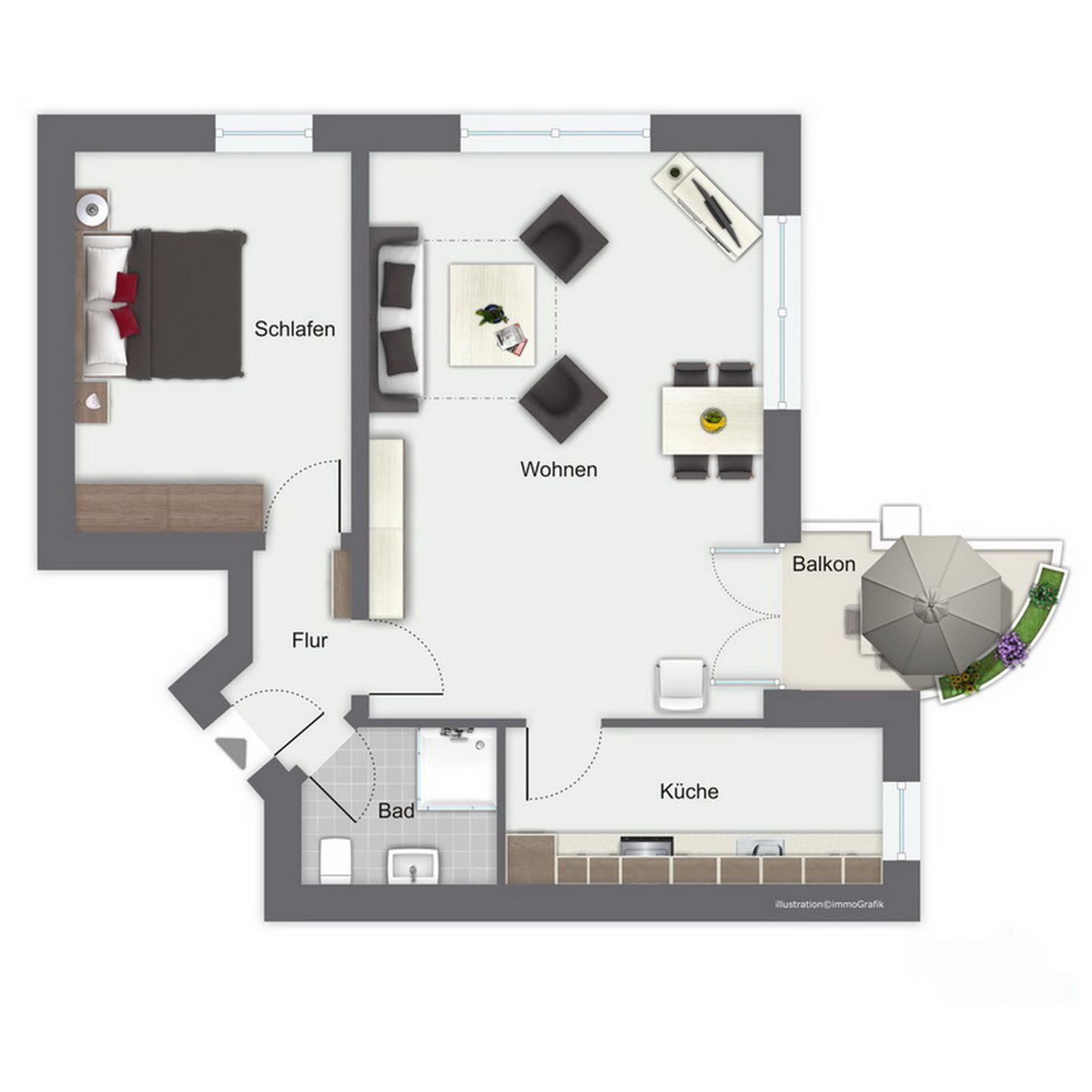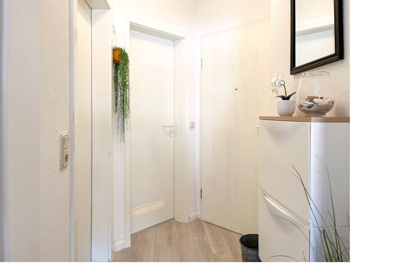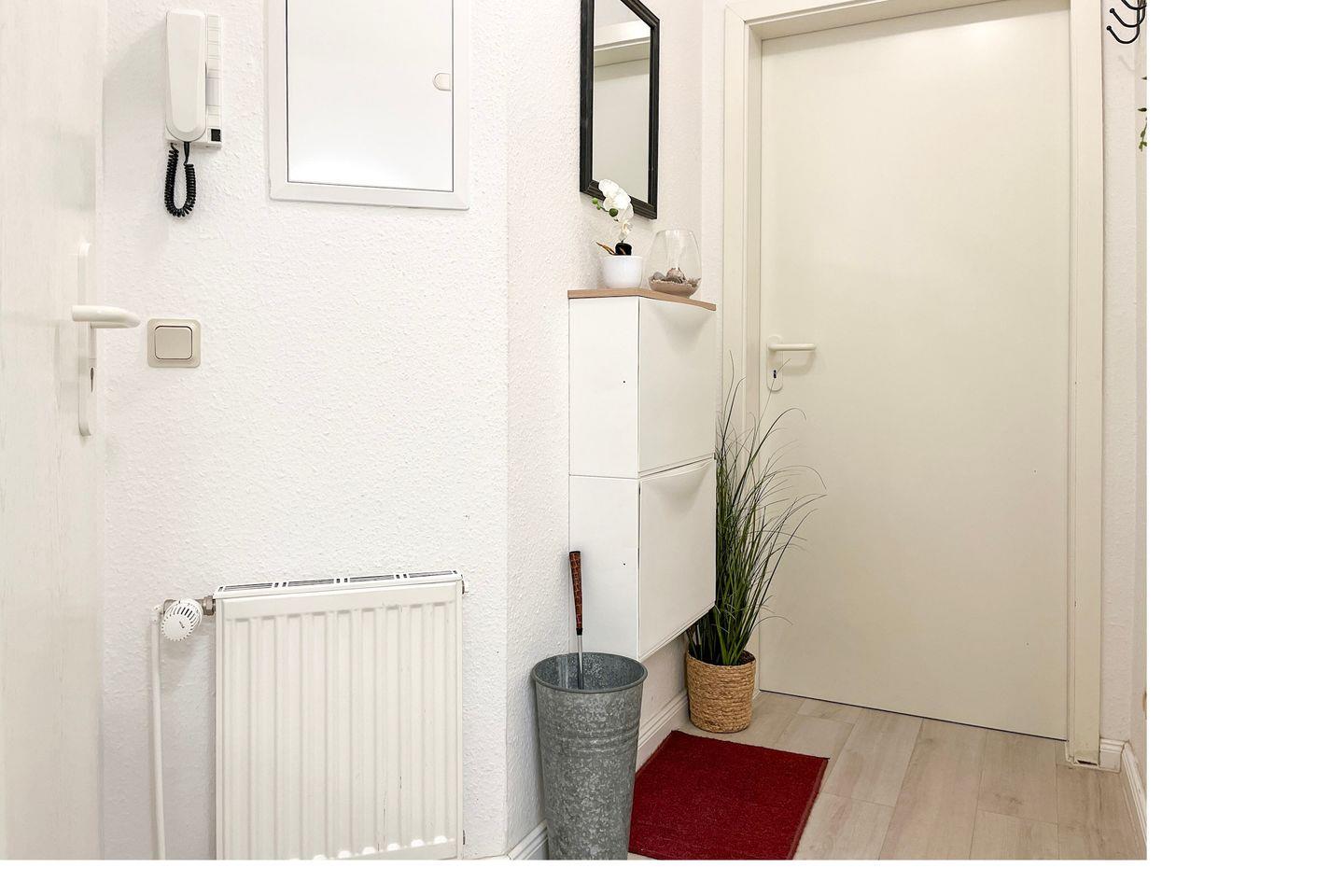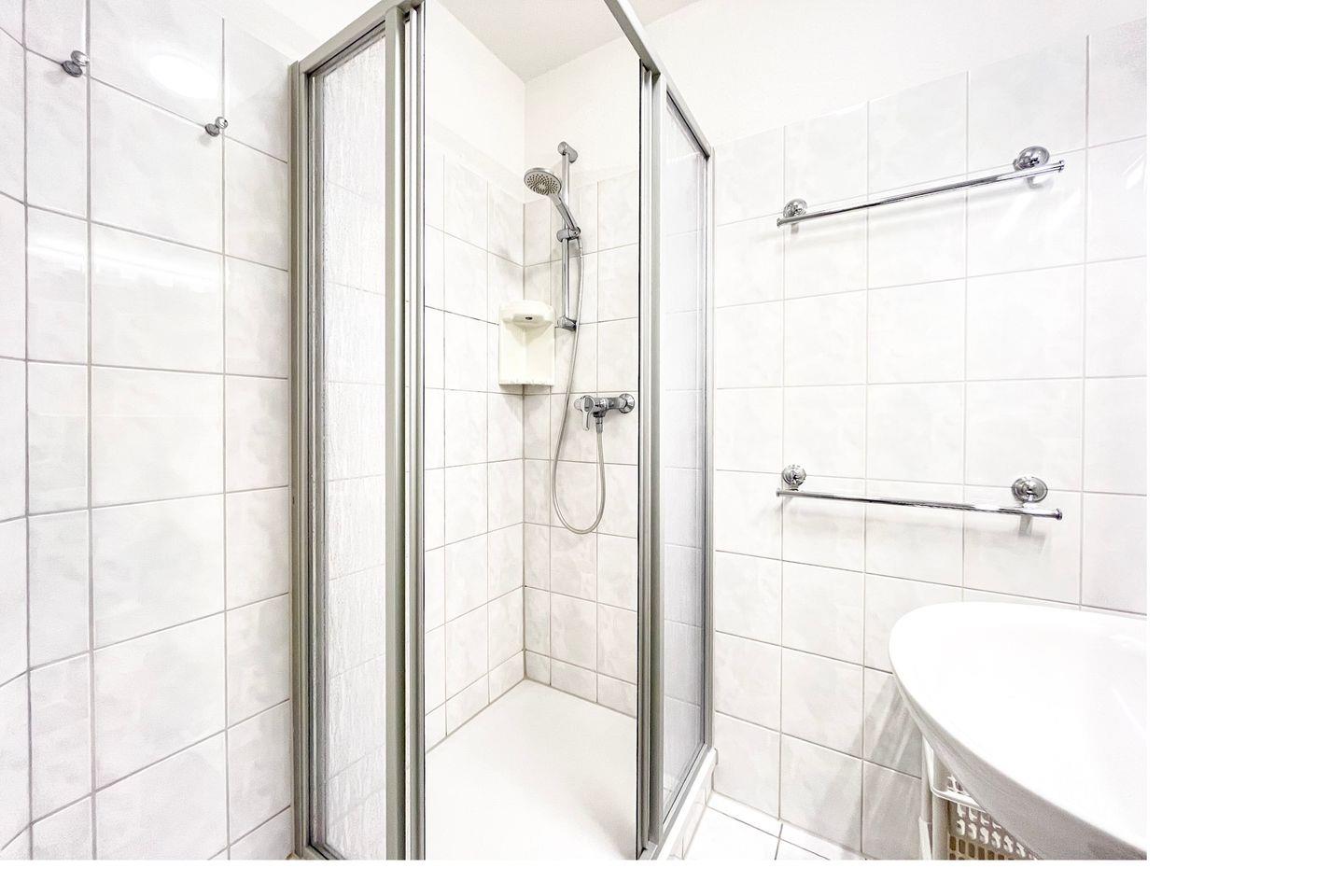 Das gepflegte Schlafzimmer mit einem 3-türigen Kleiderschrank mit Spiegel und dem Doppelbett mit Komforthöhe (2 x 90 x 200 cm) lädt zum Träumen ein. Selbstverständlich gehört ein modernes Duschbad zur Wohnung.