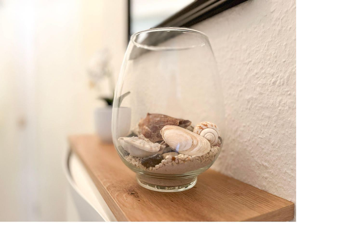 Liebevoll möbliert und urlaubsgerecht ausgestattet – so präsentiert sich diese Wohnung. Im geräumigen Wohnzimmer findest du einen modernen Essplatz für 4 Personen. Ein farbenfrohes Schlafsofa (150 x 200 cm) bietet Schlafplätze für zwei Personen. Ein Flachbild-TV und eine Stereoanlage versprechen kurzweilige Urlaubsabende. Auch eine kleine Auswahl an Lektüre und einige Spiele stehen dir zur Verfügung.