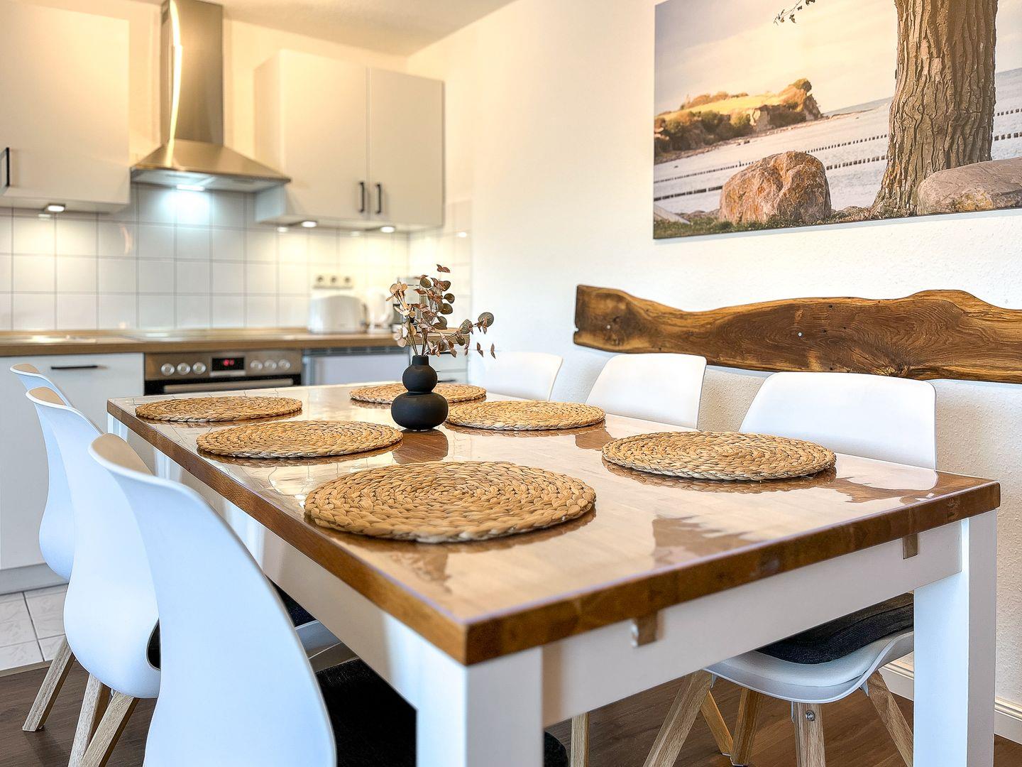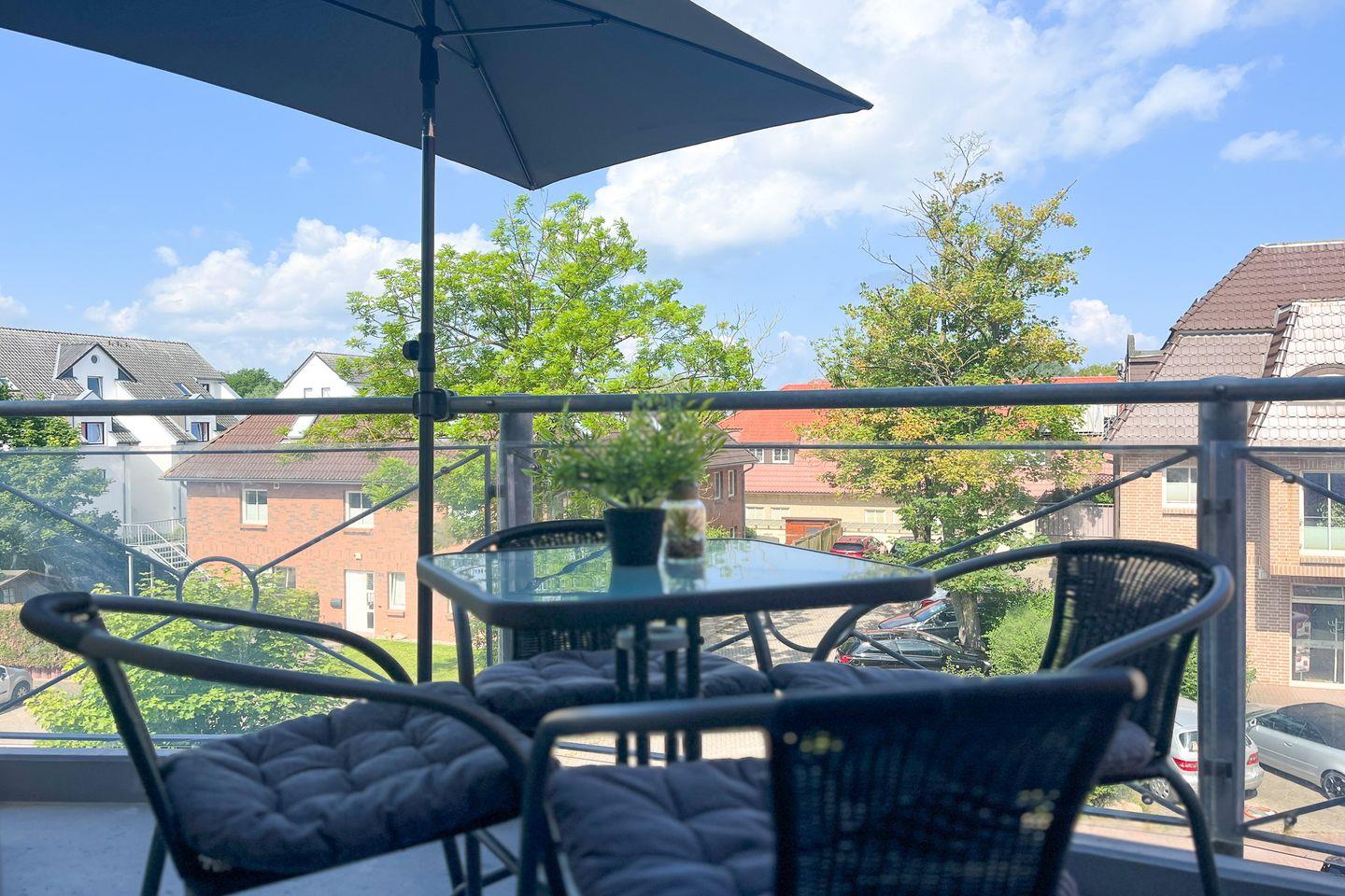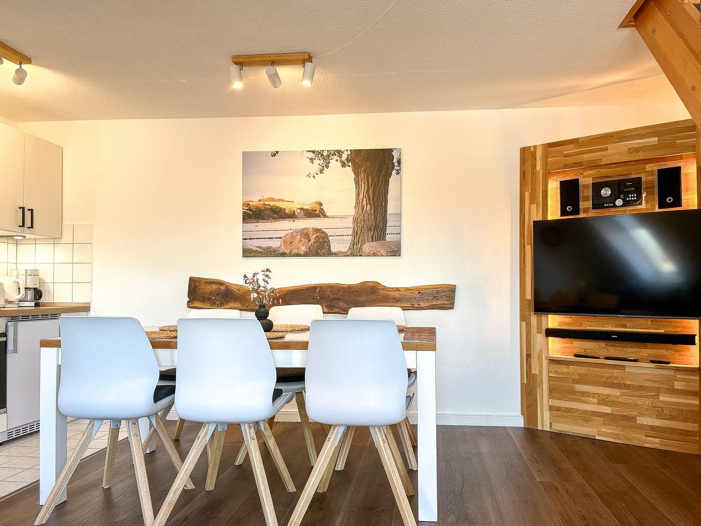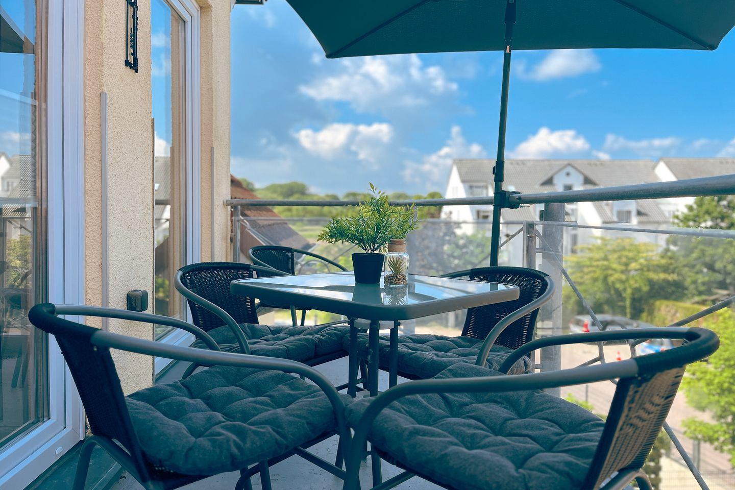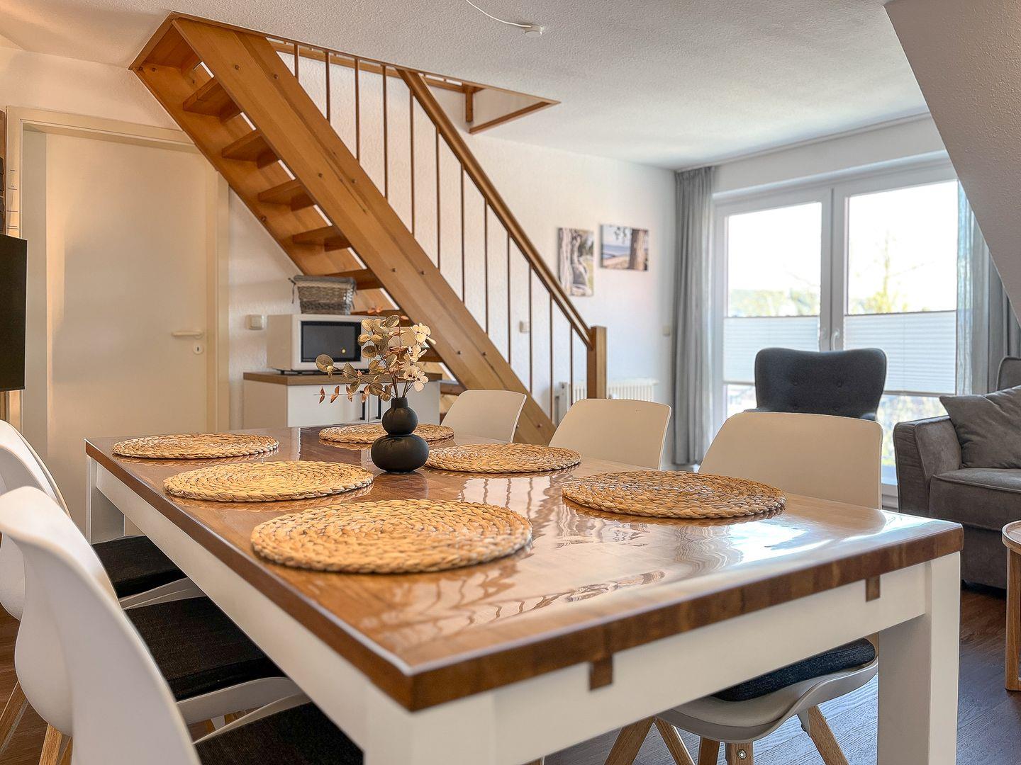 Moderne 3-Zimmer-Maisonette mit Balkon nahe Strand in Boltenhagen, ideal für Familien und bis zu 6 Personen.