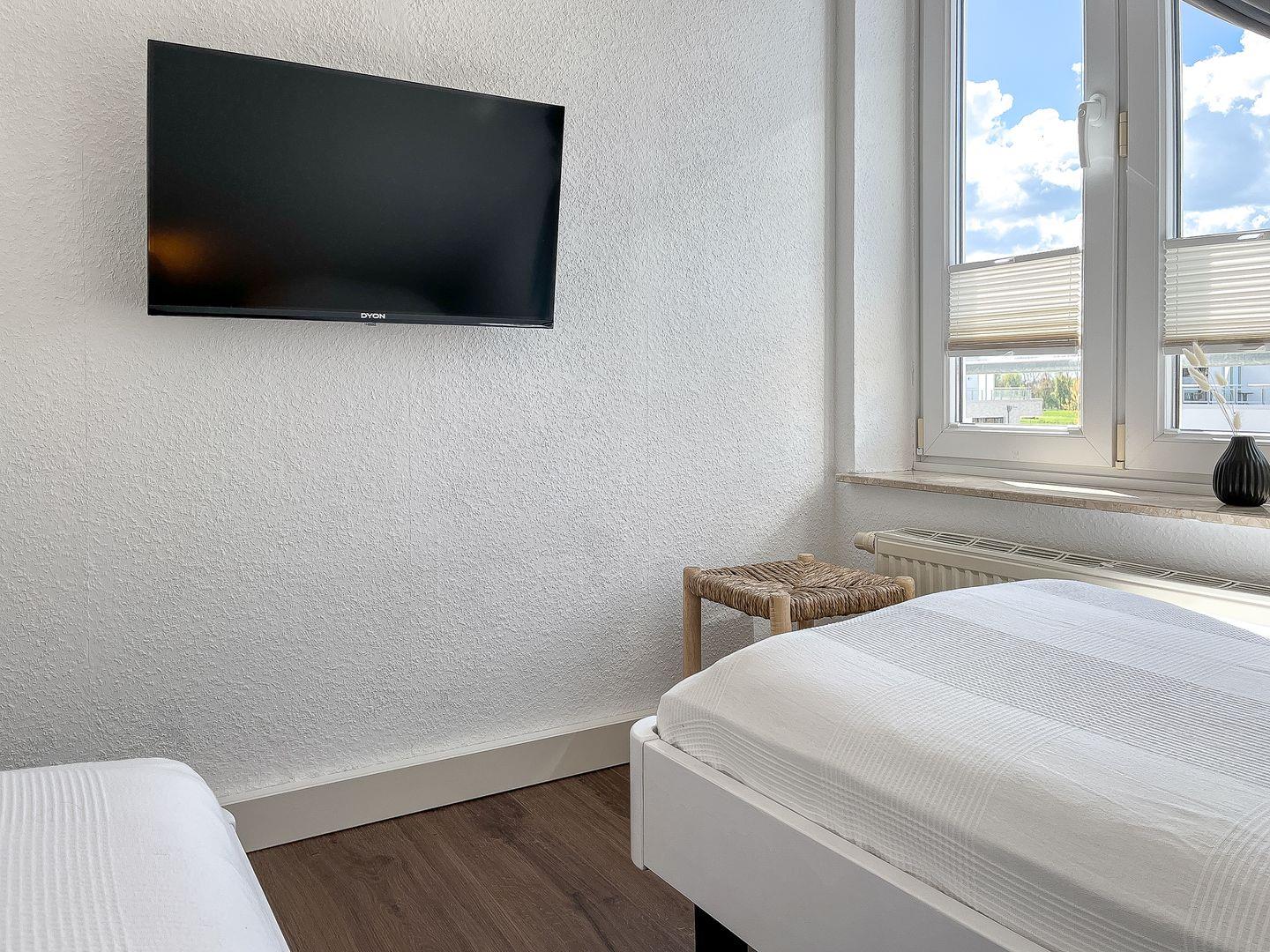 Des Weiteren befindet sich hier eine gemütliche Sitzecke und das zweite Schlafzimmer mit 2 Einzelbetten (je 80 x 200 cm). In diesem Schlafzimmer findest du auch den zweiten Fernseher.