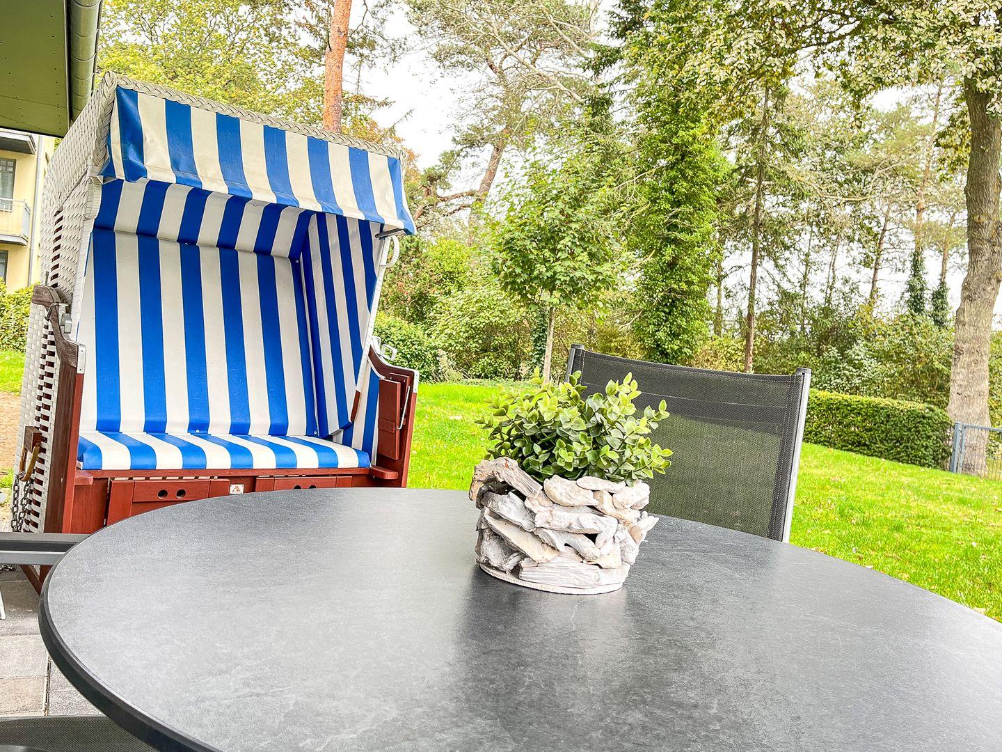 Strandnahe Ferienwohnung mit Terrasse und Gartenblick