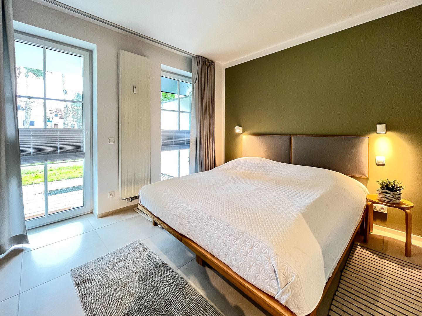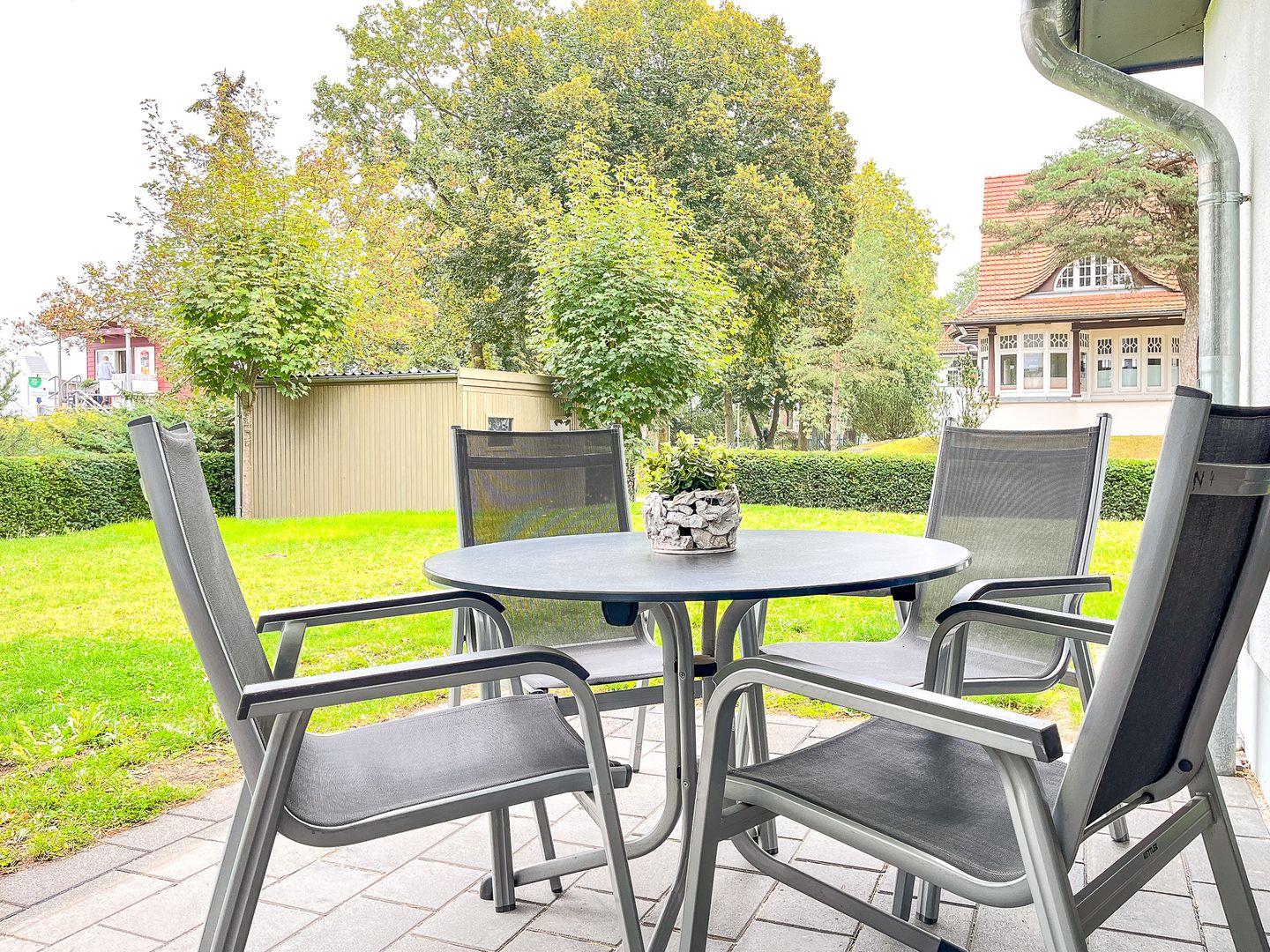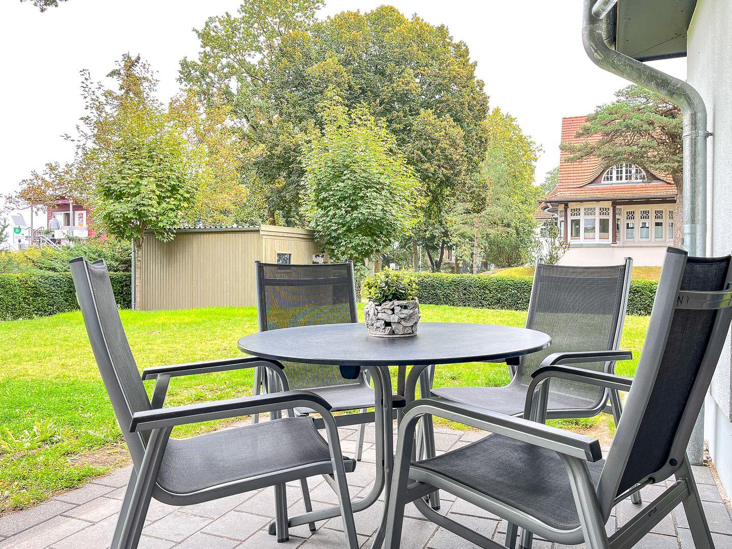 Moderne 3-Zimmer-Wohnung in Strandvilla Niklot direkt am Meer mit Terrasse und Gartenblick.