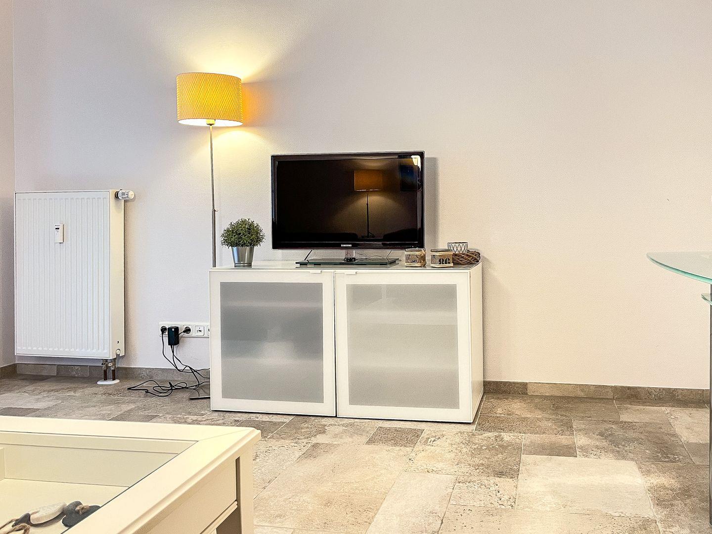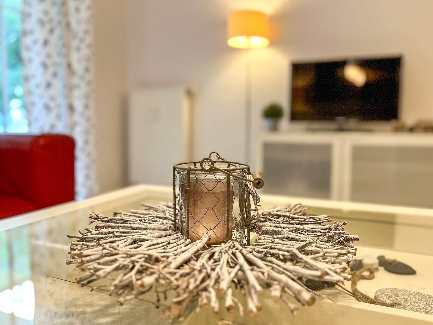 Für eine gemütliche Atmosphäre in der gesamten Ferienwohnung sorgen warme Farben und der elegante Stil. Im Wohnzimmer kannst du dich vor dem großen Flachbildfernseher entspannen. Der stilvolle Essbereich bietet Platz für kulinarische Erlebnisse. Direkt vom Wohnzimmer gelangst du auf die Südwest-Terrasse, die u. a. mit einem Strandkorb ausgestattet ist. Genieße hier die Nachmittags- und Abendsonne, lausche dem Spiel der Wellen und gönne dir eine kurze Auszeit vom Alltag. Freue dich auf ein paar erholsame Tage am Meer.