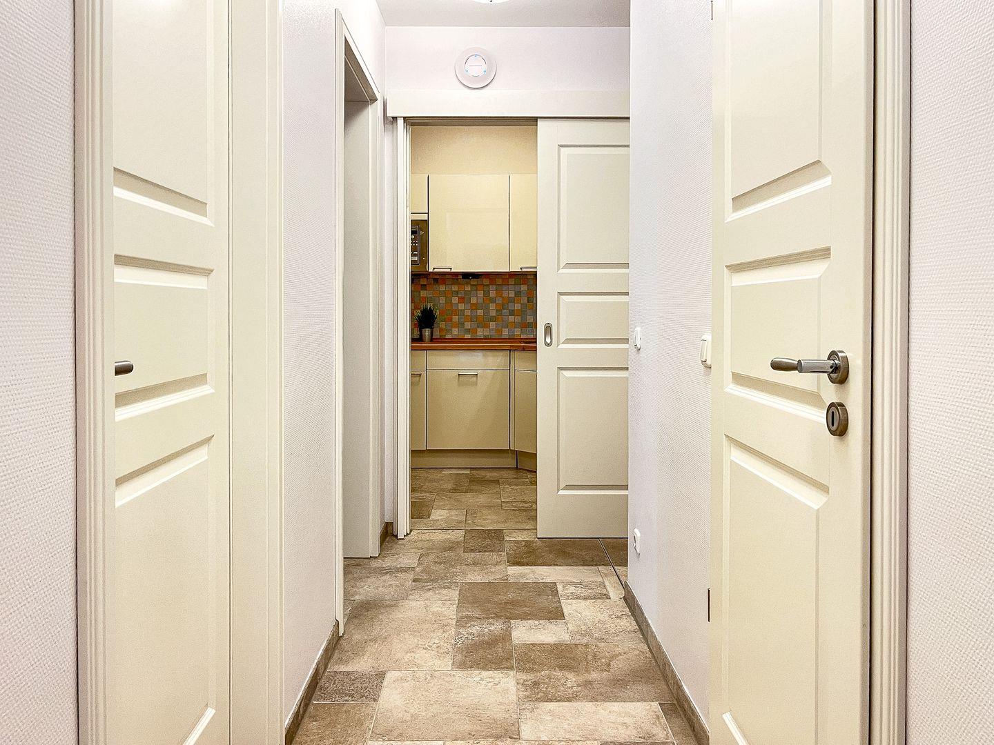 Die ca. 70 m² große Ferienwohnung liegt im Erdgeschoss und verfügt über ein Wohnzimmer, eine hochwertig ausgestattete Küche, zwei Schlafzimmer sowie ein Duschbad, ein Gäste-WC und eine Südwest-Terrasse. Die Strandentfernung beträgt nur ca. 10 Meter.