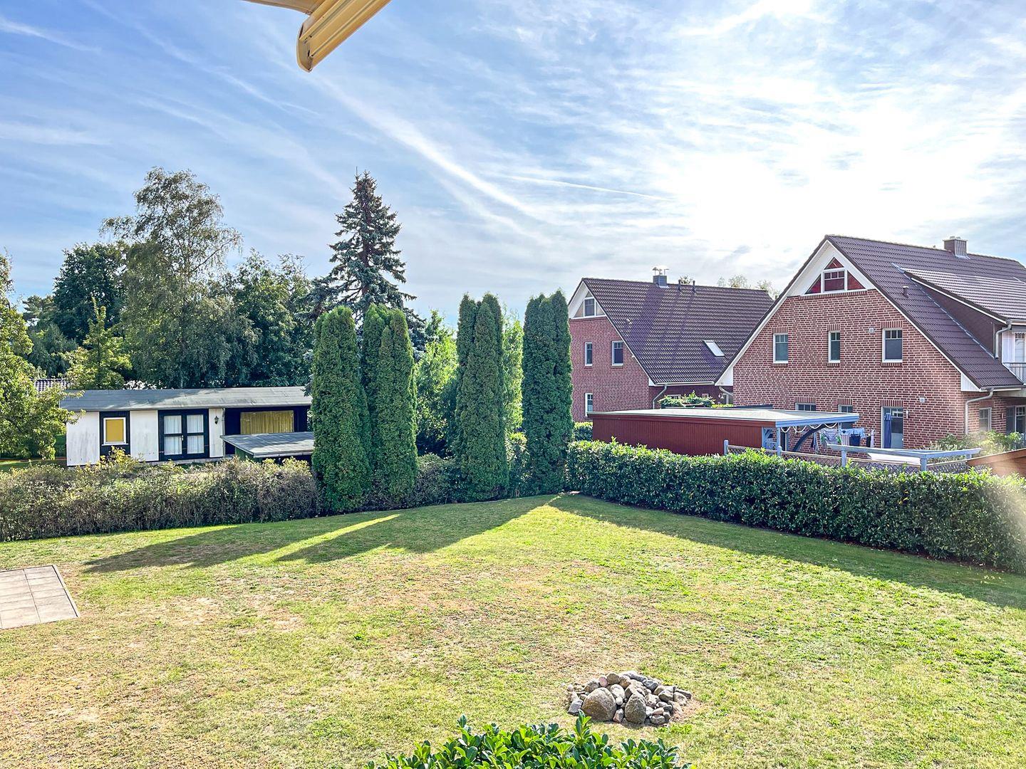 Zu der Wohnung gehört ein Freistellplatz. In einem separaten Gartengebäude findest du den passenden Raum für Fahrräder und/oder Kinderwagen. Ein Bollerwagen steht dir zur Verfügung. Die eingezäunte Rasenfläche hinter dem Haus bietet auf ca. 800 m² eine geeignete Spielwiese für Federball und andere Spiele.