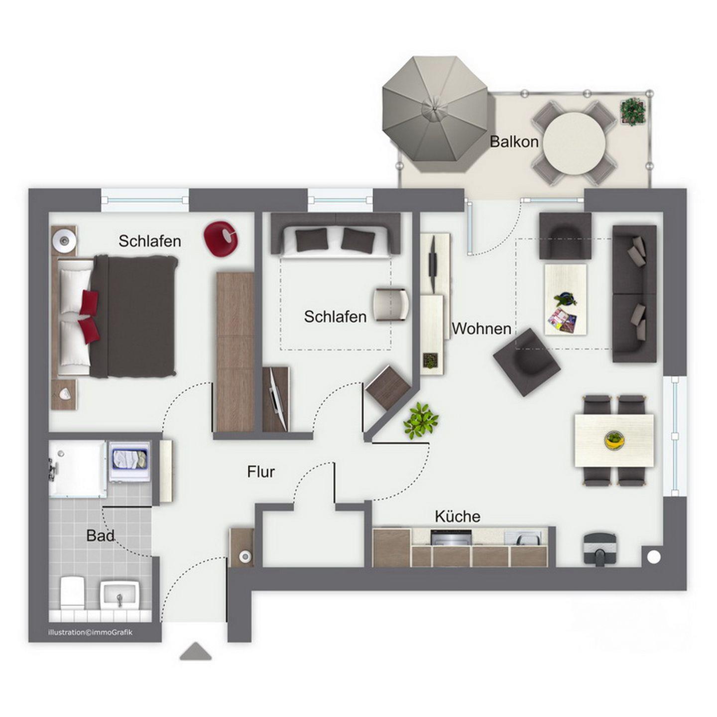 Wohnfläche 55 m²