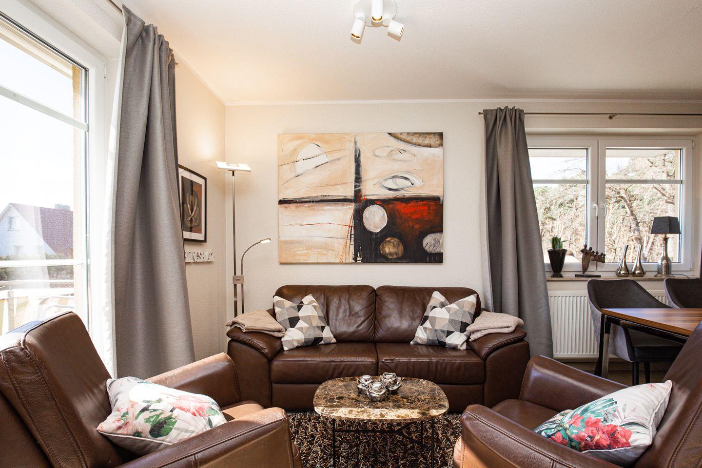 Charmante 3-Zimmer-Ferienwohnung mit Balkon und Kamin, nur 100 m vom Strand in Ostseebad Boltenhagen entfernt.