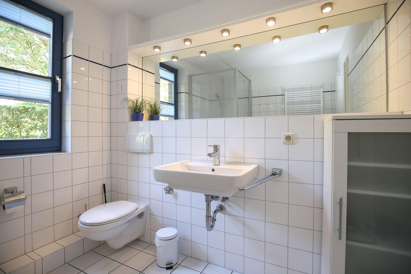 Im gefliesten Duschbad gibt es ein Fenster. Ein Föhn ist vorhanden. In dieser Ferienwohnung sind ein Bollerwagen, ein City Roller sowie zwei Fahrräder und ein Anhänger incl. (Zusatzausstattung - alles ohne Gewähr). Mitgebrachte Fahrräder können im Fahrradständer am Haus abgestellt werden. In dieser Ferienwohnung sind Haustiere nicht erlaubt. Das Rauchen ist nicht gestattet.