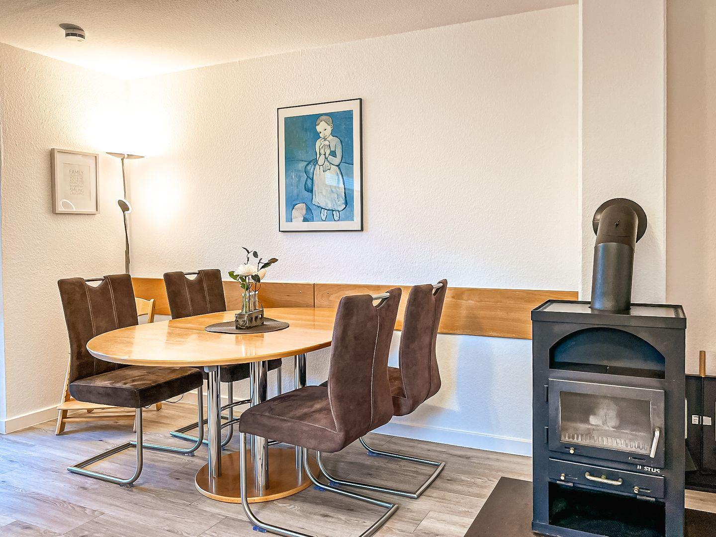 Das gemütliche Ferienhaus eignet sich ideal für einen Familienurlaub an der Ostsee. Im Wohnzimmer mit Essbereich ist die voll ausgestattete Küchenzeile mit einem 4-Platten-Cerankochfeld, Backofen sowie einer Mikrowelle und einem Geschirrspüler integriert. In der kalten Jahreszeit sorgt der Kamin für entspannende Stunden. Zur Ausstattung gehören natürlich auch ein Flachbildfernseher und eine Stereoanlage. Die Südterrasse ist vom Wohnzimmer aus betretbar. Nach einem ausgiebigen Strandbesuch kannst du hier den Tag gut erholt ausklingen lassen.