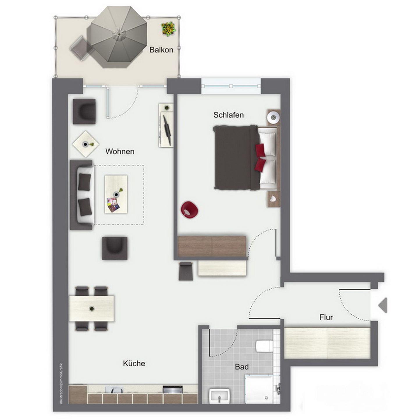 Die Wohnung befindet sich im 1. OG und vereint auf 44 m² einen großzügigen Wohn-/Essbereich, ein Schlafzimmer sowie ein Badezimmer. Zum Strand und zur beliebten Seebrücke sind es nur ca. 100 m.