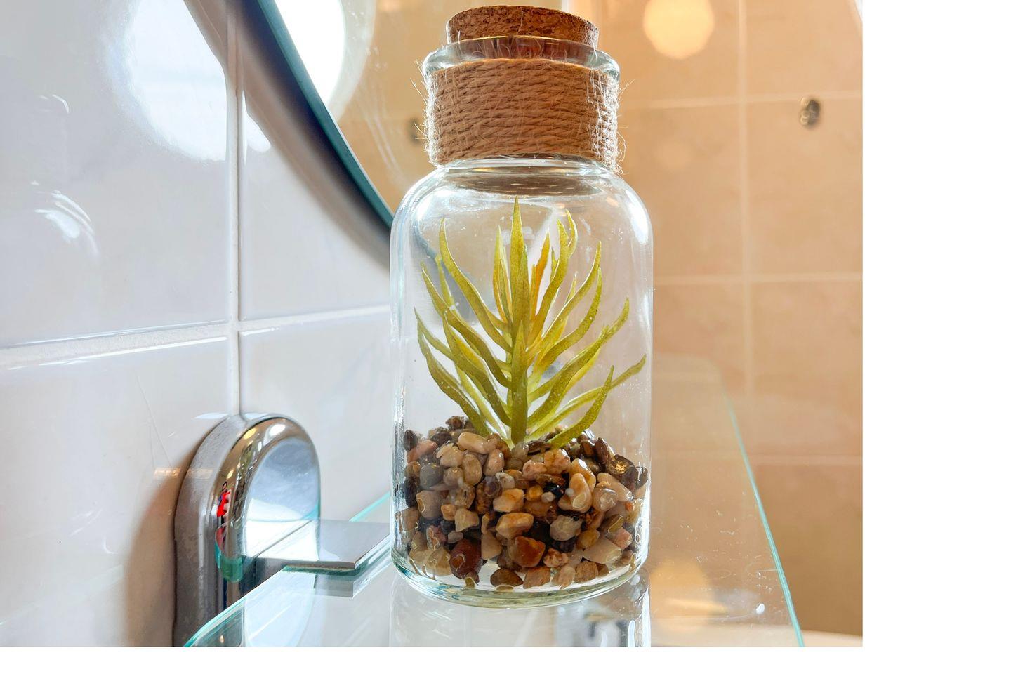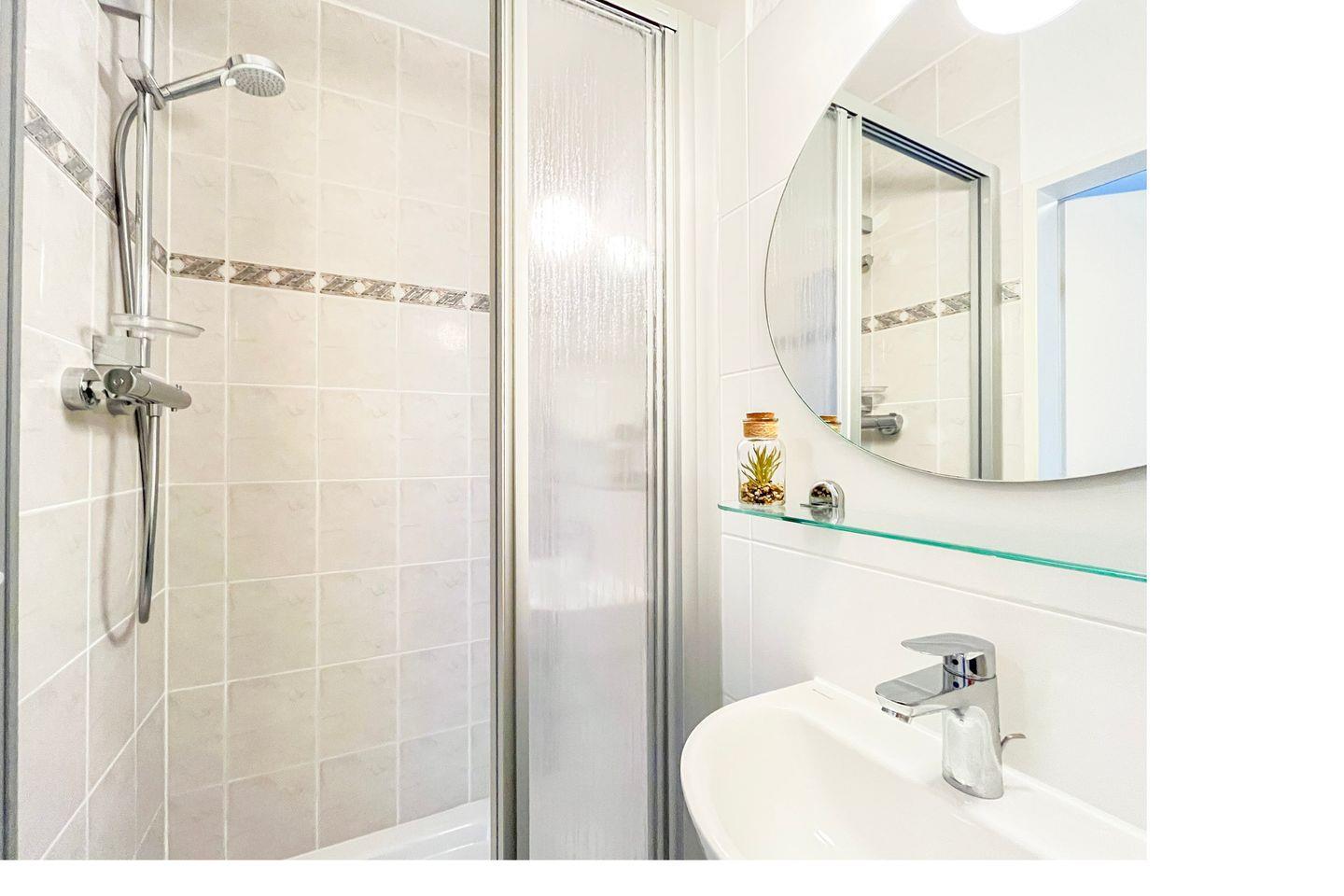 Im oberen Bereich befinden sich 2 separate Schlafzimmer mit 2. TV sowie Verdunklungsvorhängen und ein größeres Badezimmer. Die Schlafzimmer sind mit Laminat ausgelegt. In einem Schlafzimmer befindet sich ein Doppelbett (2 x 90 x 200 cm) und im 2. Schlafzimmer sind 2 Einzelbetten (90 x 200 cm). Ein geräumiger Kleiderschrank bietet viel Platz für deine Reiseutensilien.