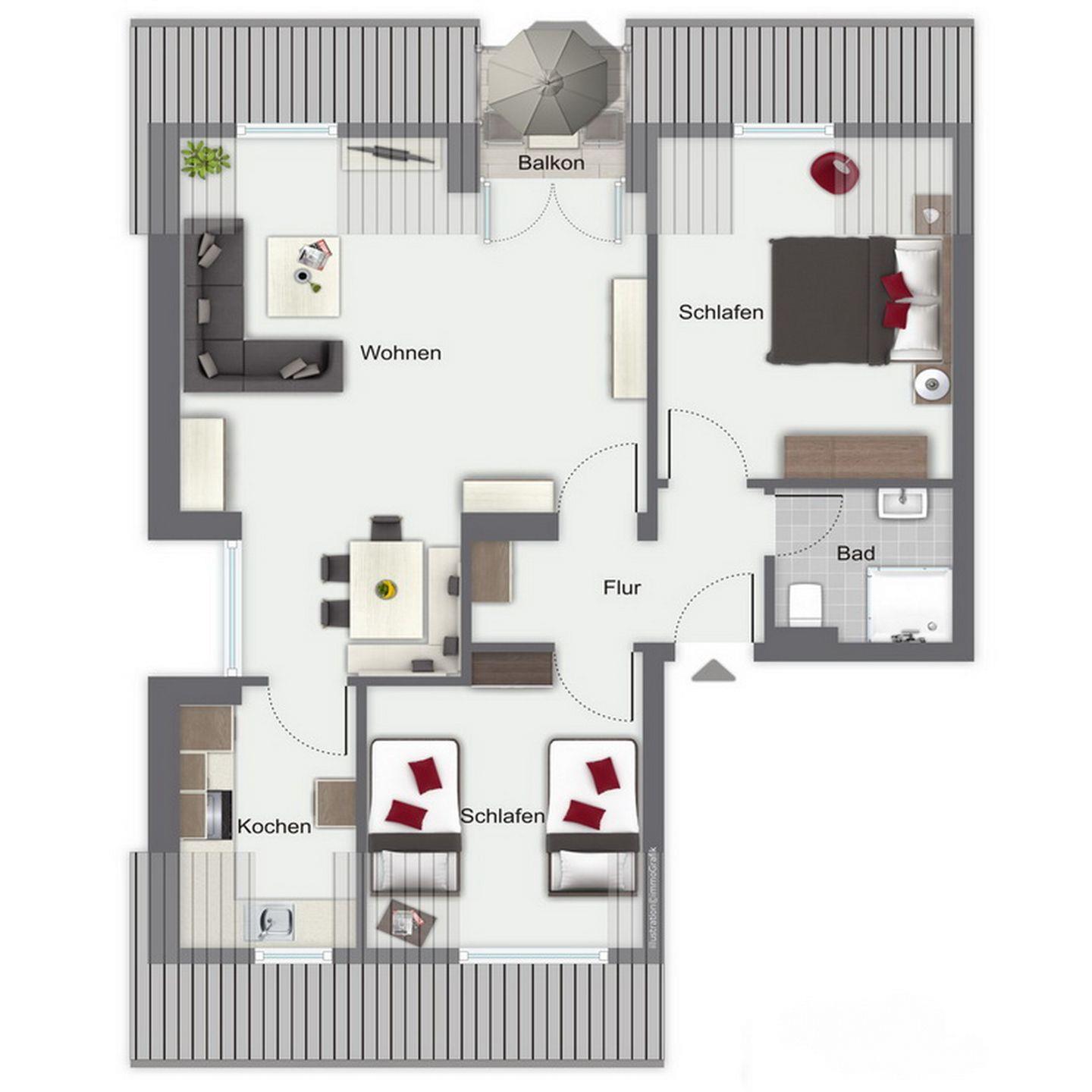Mit einer Größe von ca. 65 m² kannst du in diesem 3-Zi-Appartment deinen Urlaub genießen. Die Wohnung „Möwennest“ mit Balkon in Süd-Lage findest du im 2. OG. Dich erwartet ein Wohn- und Essbereich, eine separate Küche, zwei Schlafzimmer und ein Duschbad. Die Entfernung zum Strand von der Ferienanlage Sünnslag beträgt ca. 400 m.